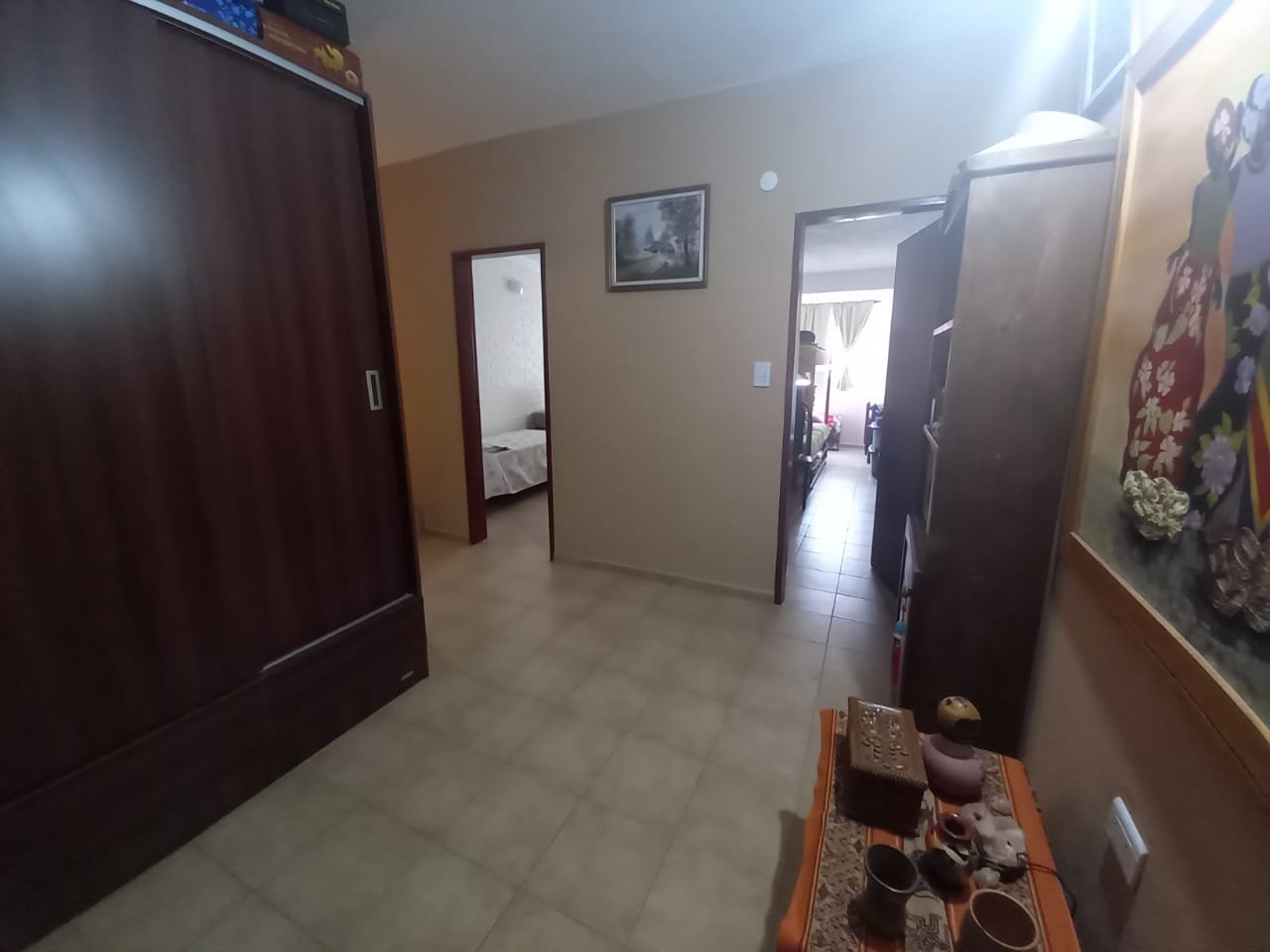 1 Sala de estar en desnivel que funciona como pasillo divisorio del baño y los dormitorios.