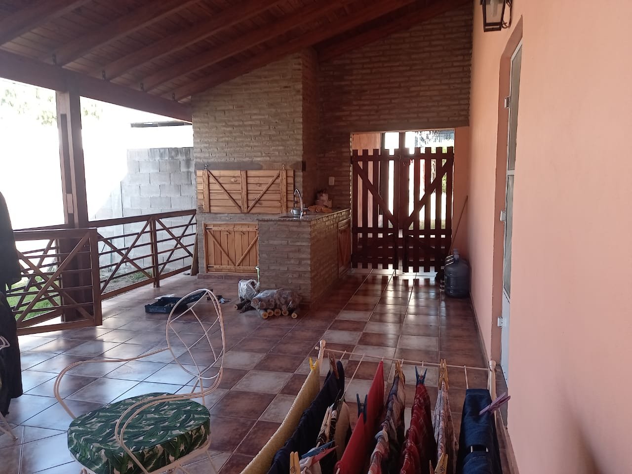 1 Galería amplia tipo quincho ubicada en el costado derecho con asador, lugar para guardar leña y una isla con base de ladrillos vistos, mesada de mármol granito y bacha de acero inoxidable.
