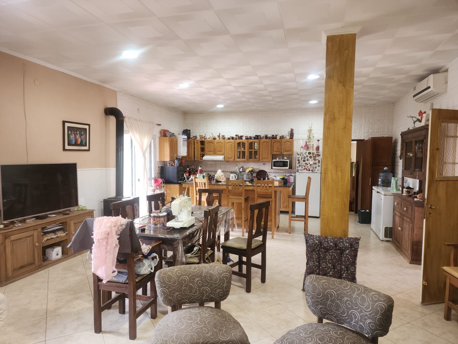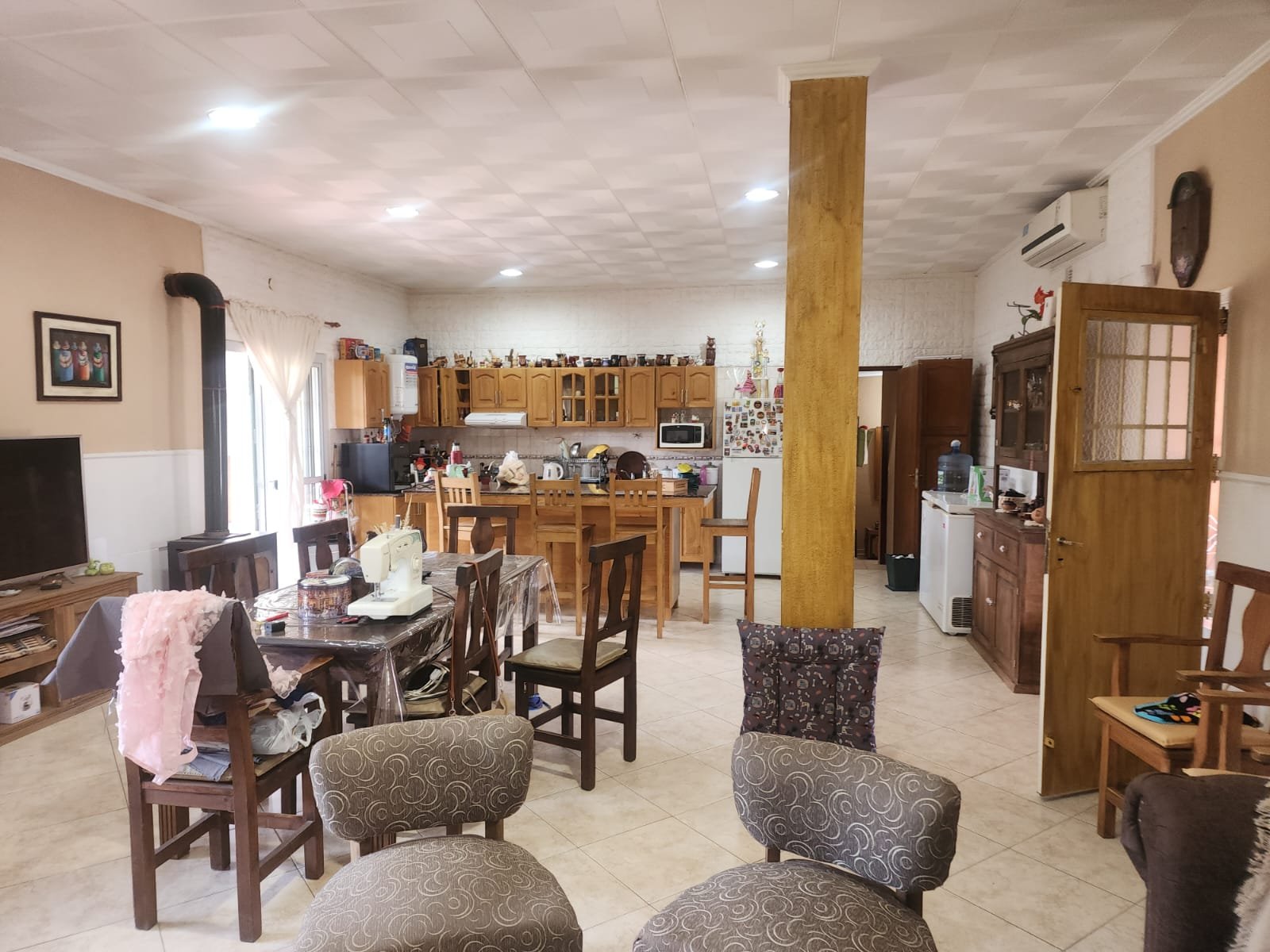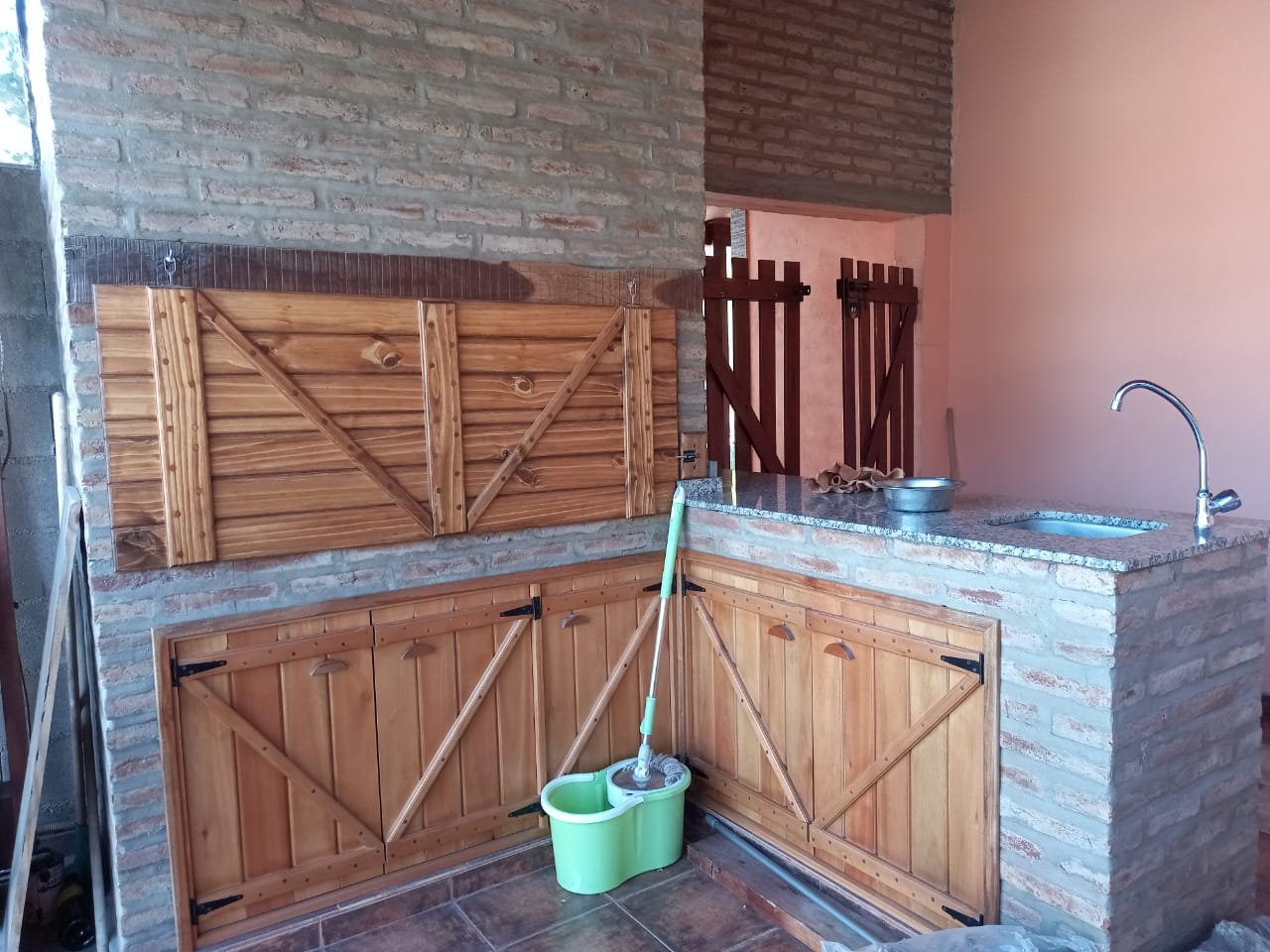1 Cocina living comedor integrada de gran tamaño, muy luminosa con buena ventilación, estufa tipo tromen a leña para calefaccionarse y aire acondicionado. La cocina se encuentra separada del comedor por una isla construida con base de madera y mesada de mármol granito. La misma se compone de alacena y bajomesada de madera, mesada de mármol granito con bacha de acero inoxidable, extractor de humo y calefón.