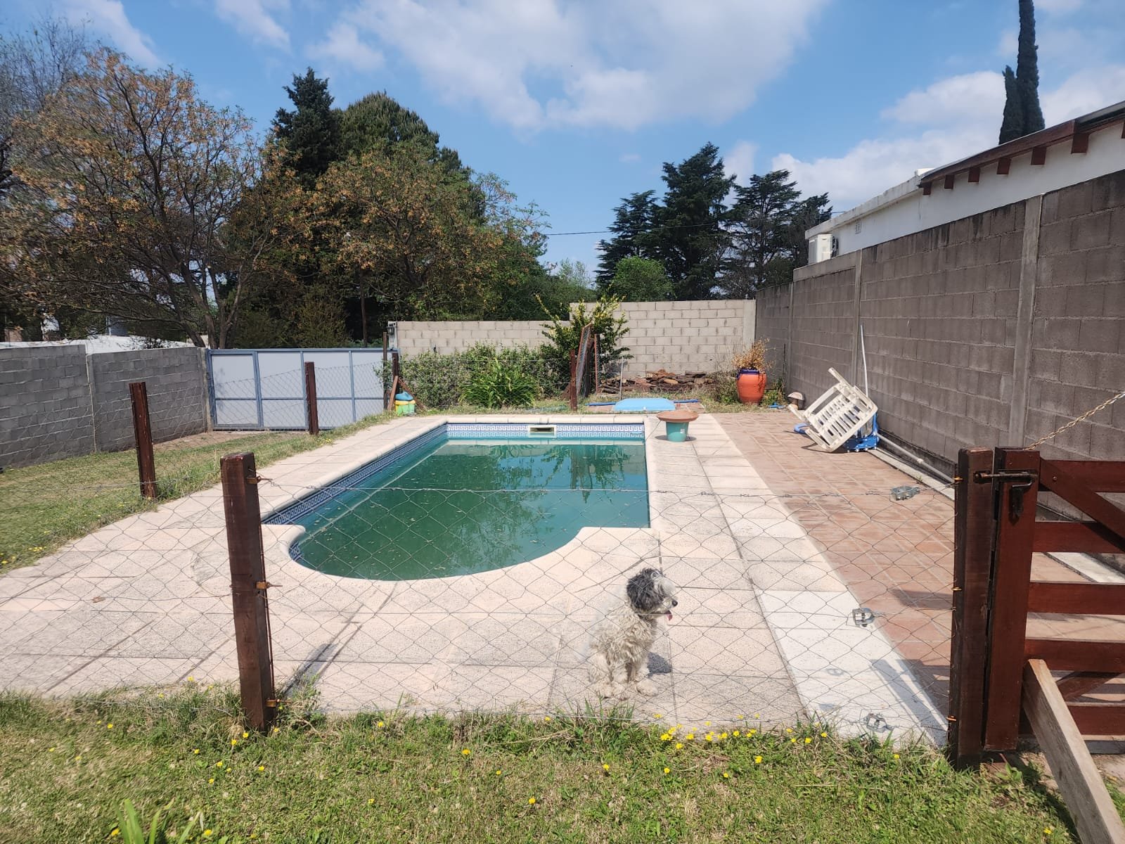 1 Pileta Induplast de 7,80 metros de largo x 3,50 metros de ancho con todo el sistema funcionando (bomba y filtro), rodeada de losetas térmicas y cercada con postes de madera y alambre romboidal.