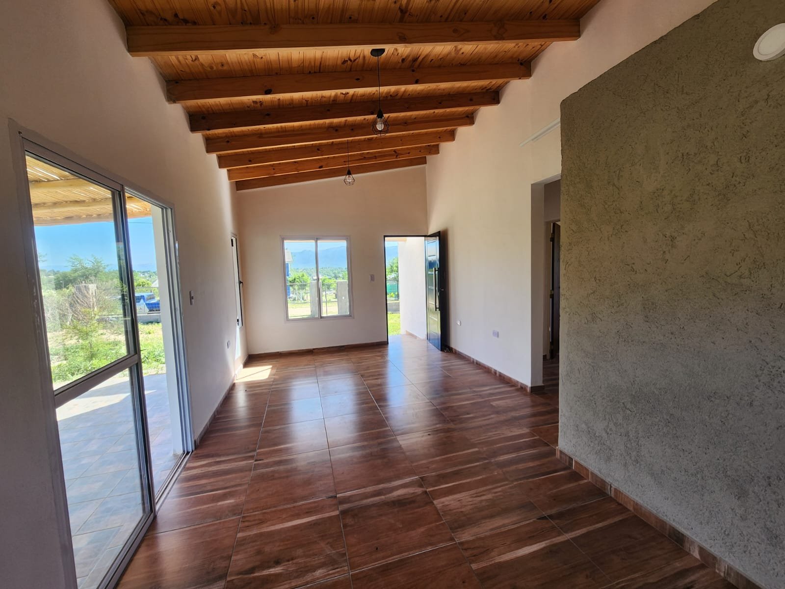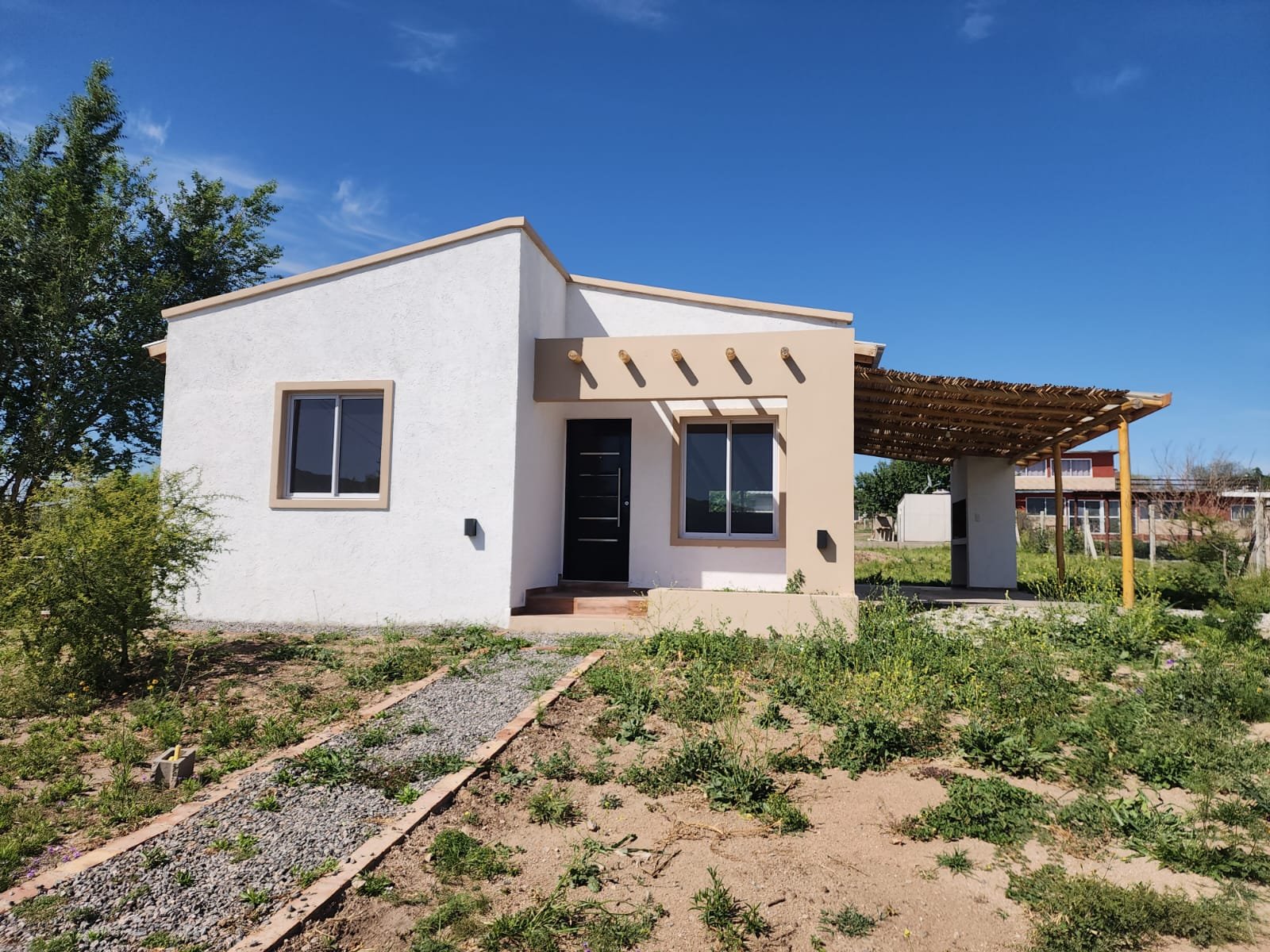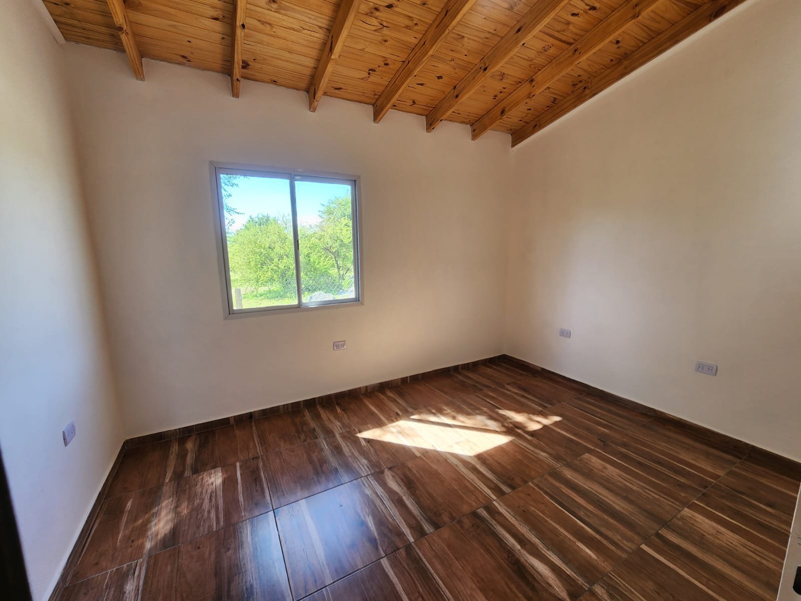 La propiedad se encuentra construida con los siguientes materiales: paredes de material, pisos cerámicos, aberturas de aluminio y techo de chapa con aislante revestido con madera. Posee cámara séptica y sangría destinada a desechos cloacales, ambas están ubicadas en el costado izquierdo de la casa, detrás del segundo dormitorio.