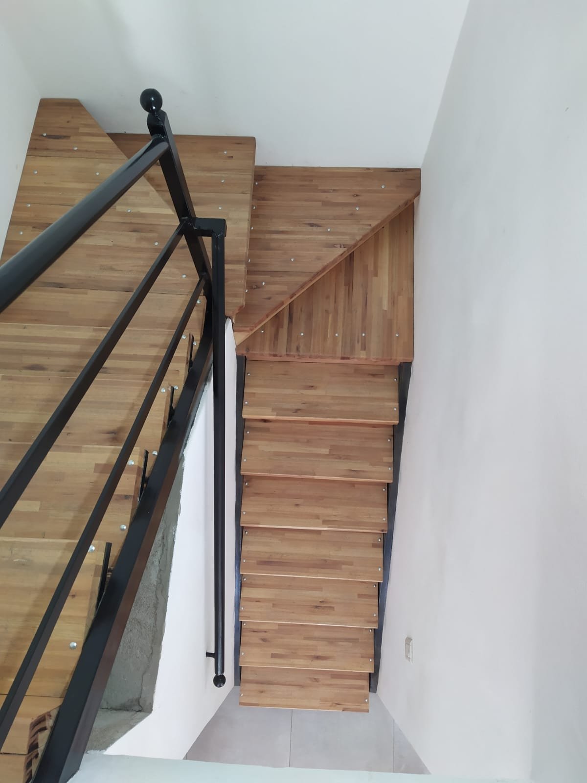 Planta Alta: Se accede desde el comedor por medio de una escalera con peldaños de madera, estructura y baranda de caño.