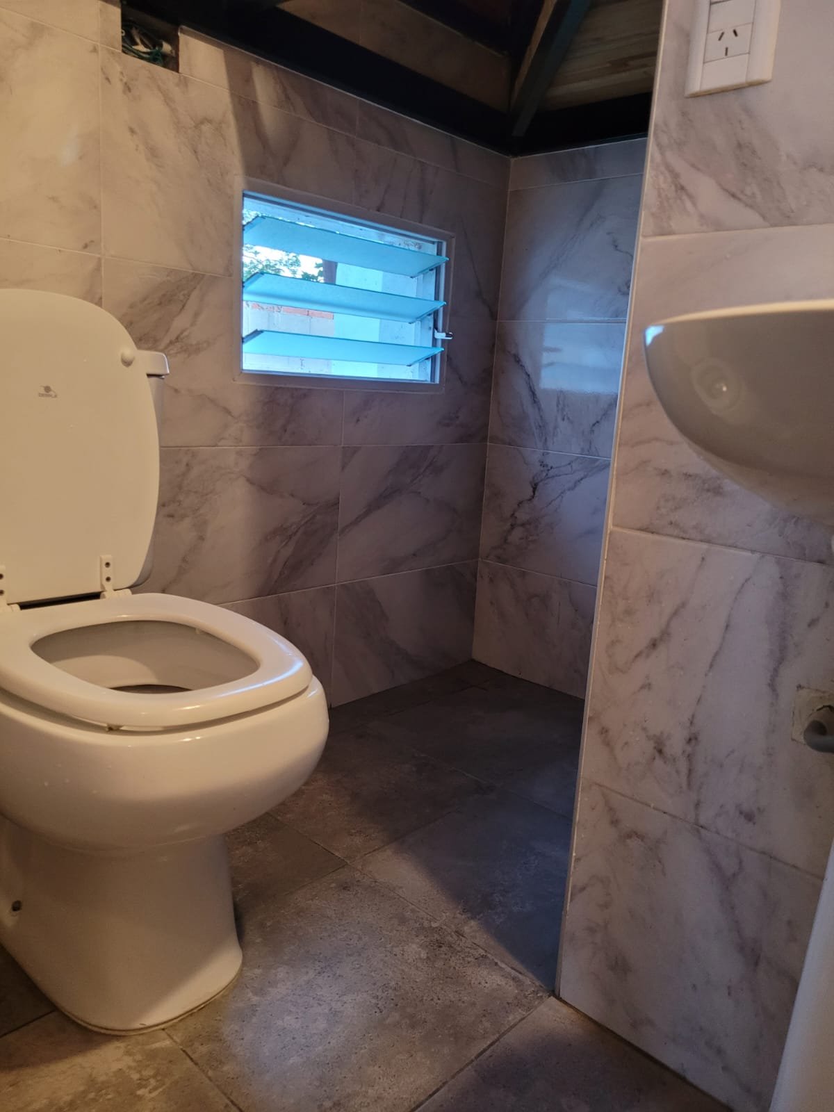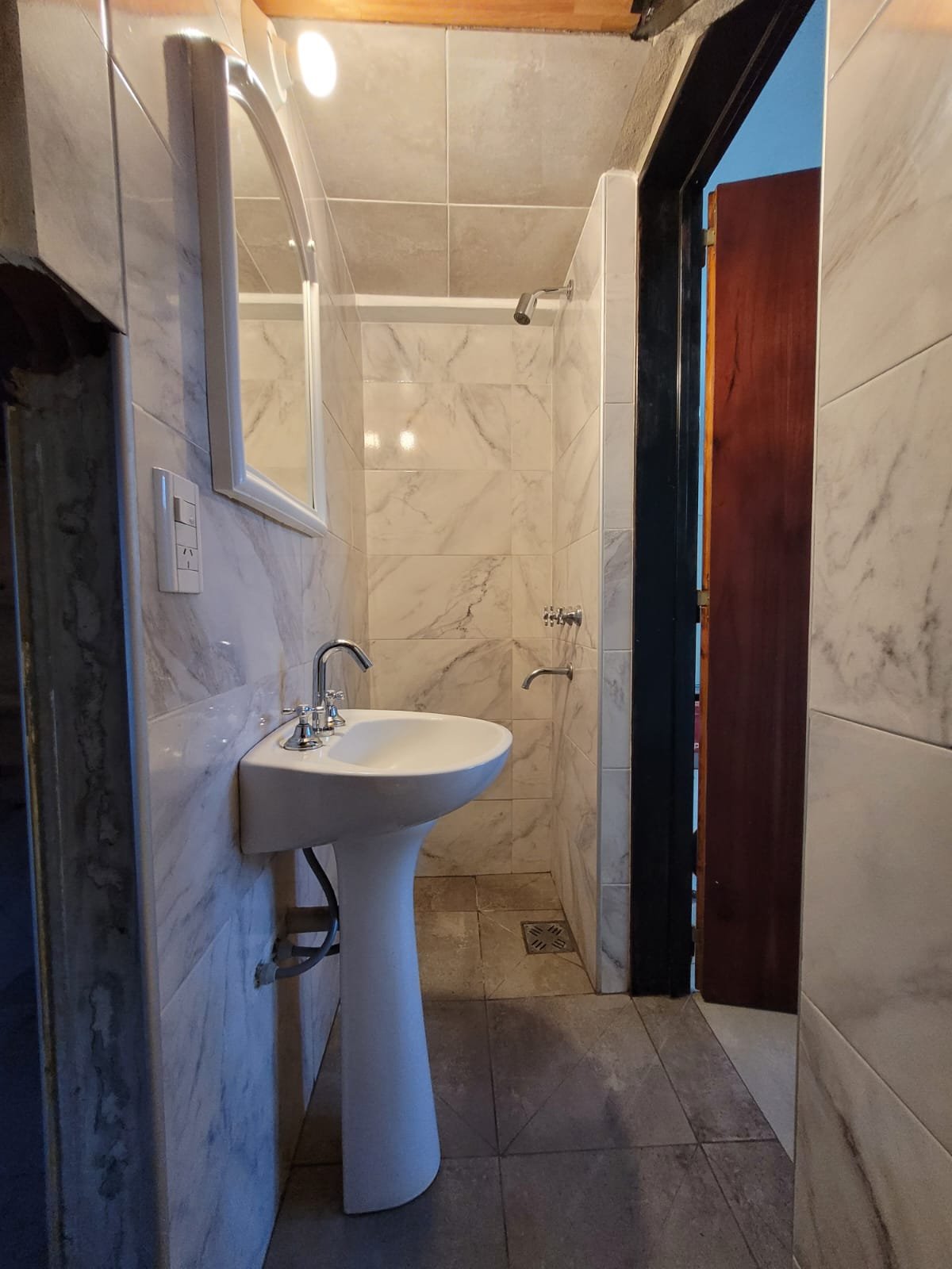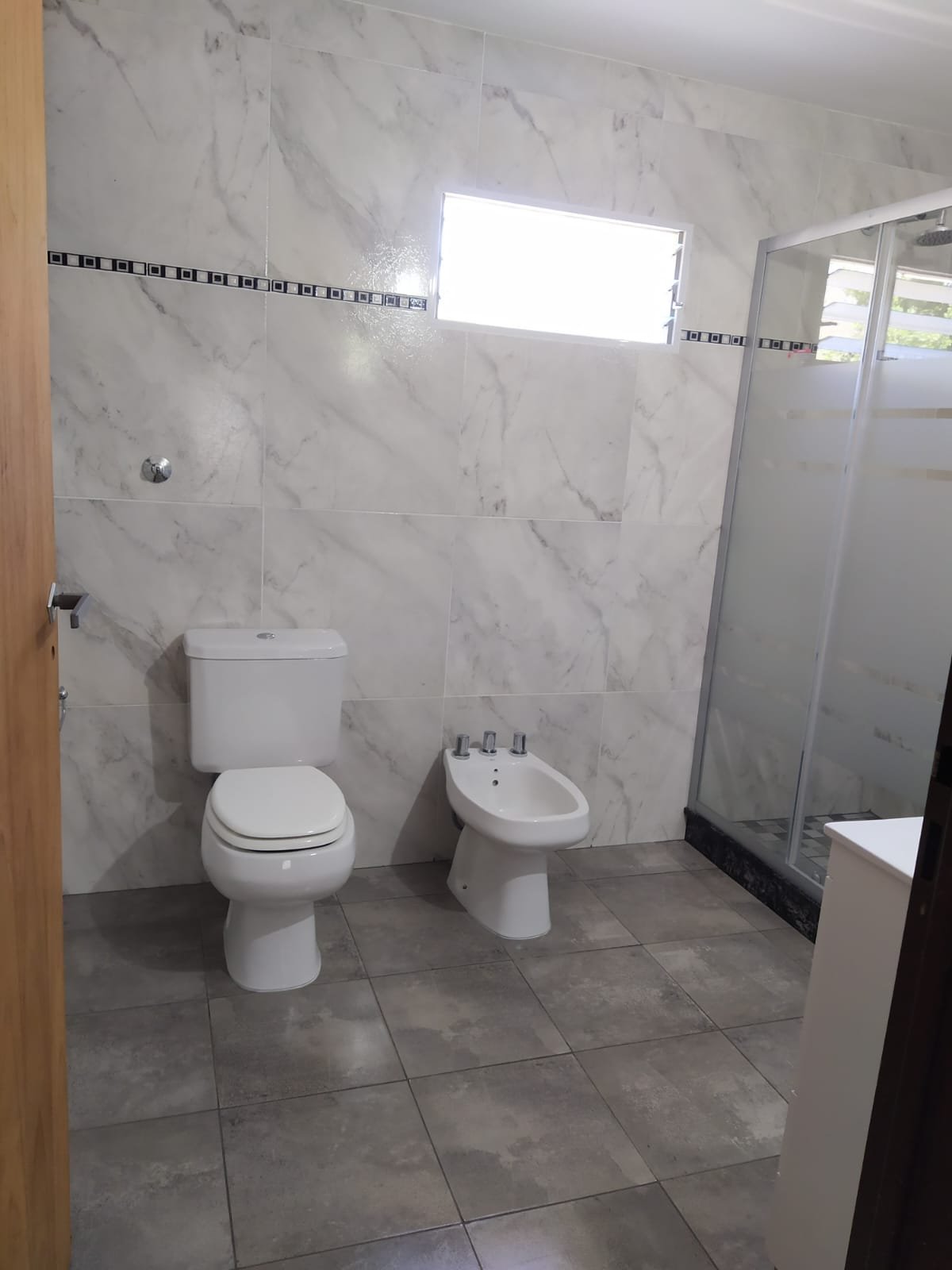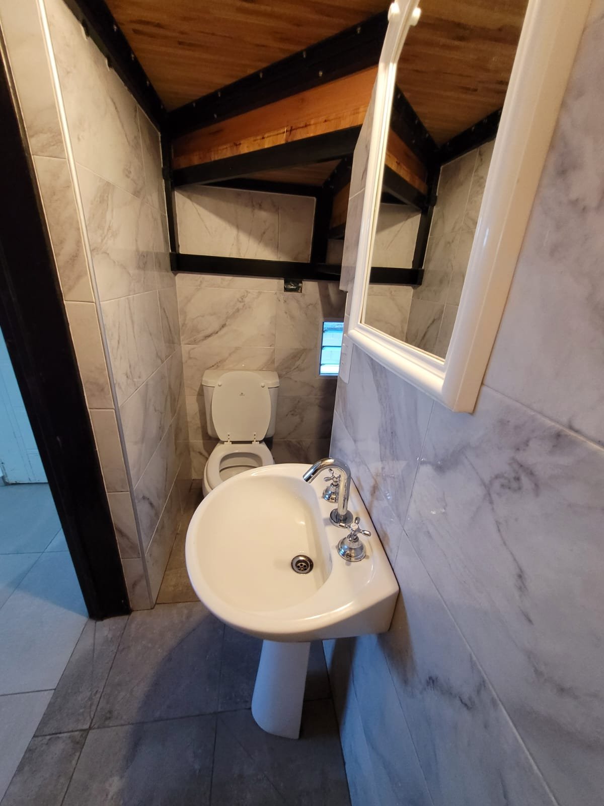1 Garaje quincho con acceso desde el frente por medio de un portón de chapa inyectada de tres hojas con capacidad para guardar un vehículo, asador, salida al patio trasero y 1 Baño de estilo moderno completo con todos sus accesorios.