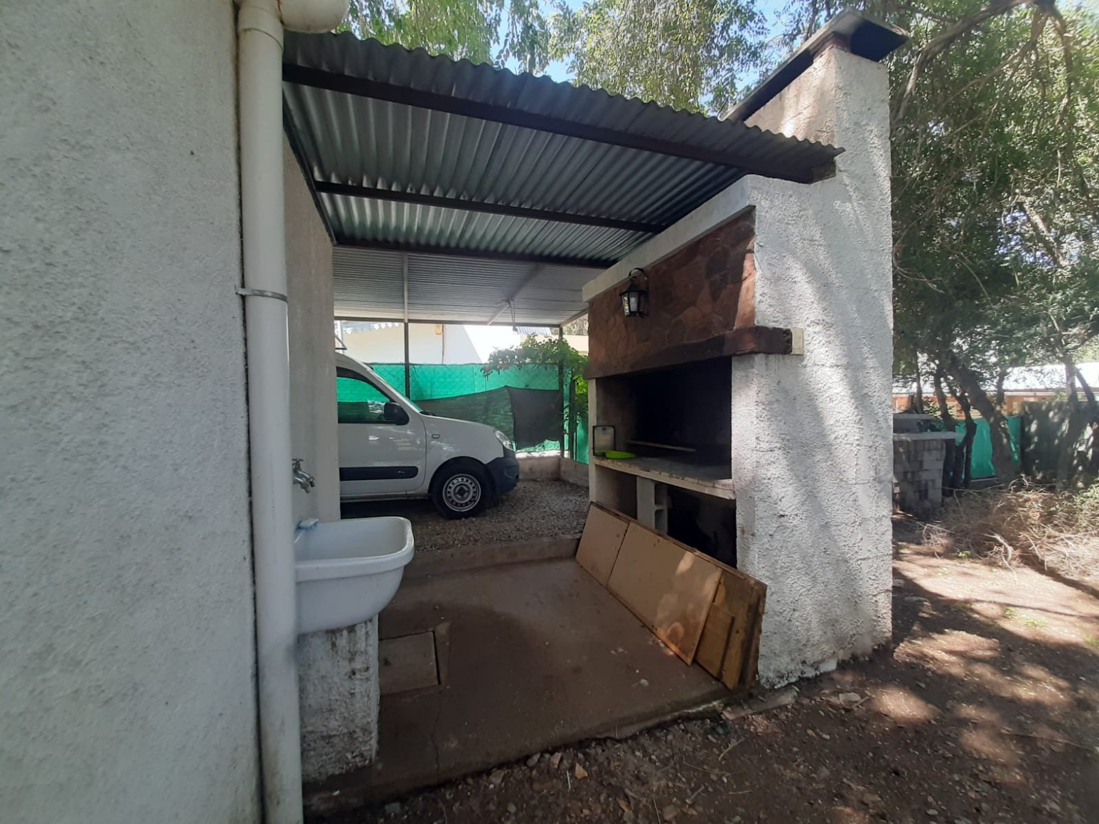 1 Cochera tipo quincho semicubierto ubicado en el costado izquierdo de la casa con capacidad para guardar un vehículo, asador y pileta para lavar la ropa. La misma está construida con estructura de caño, techo de chapa y piso de tierra con piedritas, excepto donde está el asador que tiene piso de concreto.