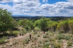 Todo el perímetro está cerrado con alambre romboidal y lona más dos portones de madera tipo tranquera para acceder a la vivienda desde ambas calles.
