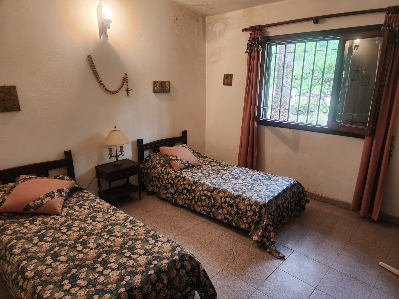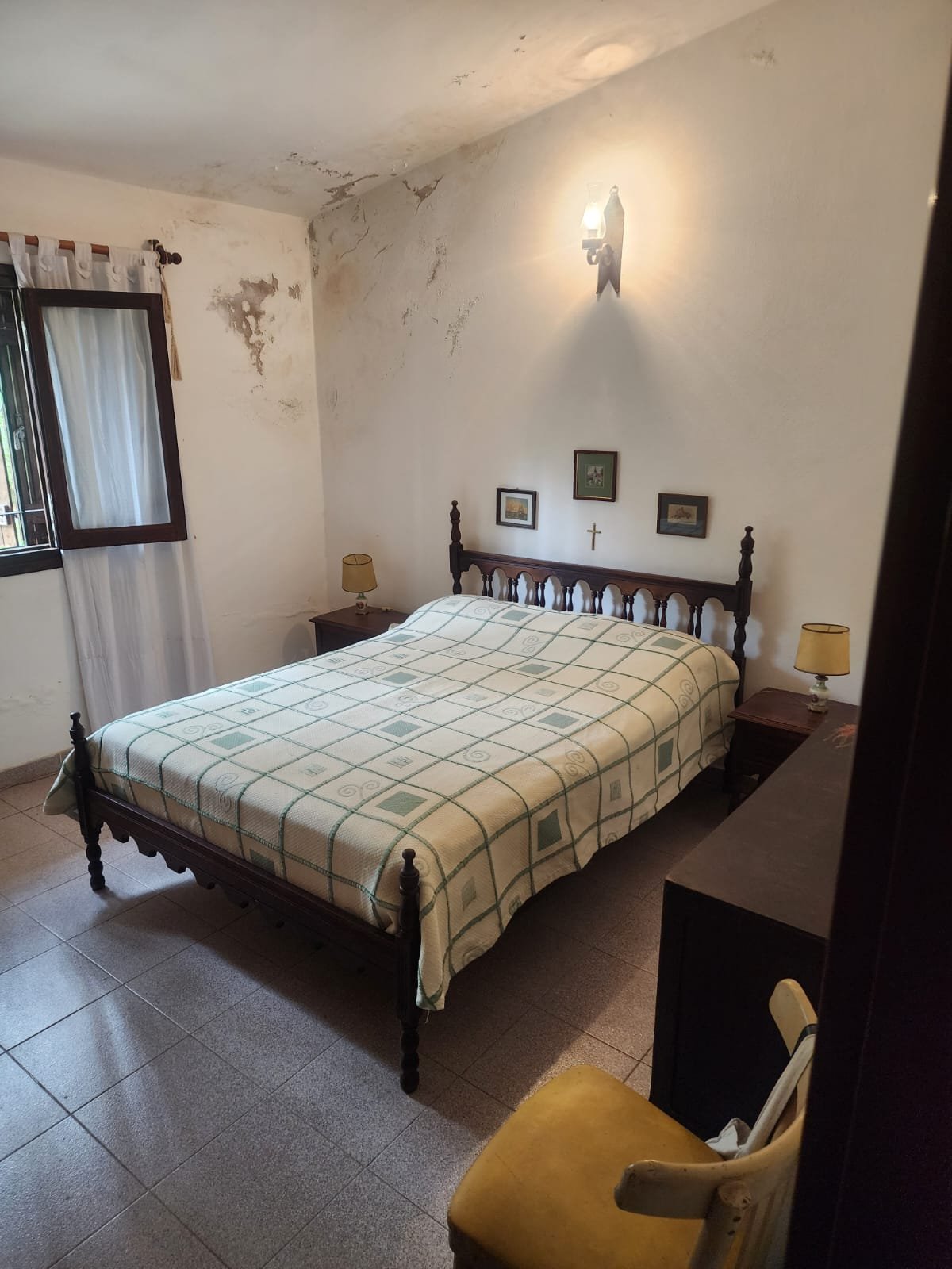La propiedad se encuentra en buen estado de conservación con un arreglo menor de humedad situado en el frente de la casa y en una de las habitaciones que da al frente, construida con los siguientes materiales: paredes anchas de material, techo de losa con tejas, aberturas de madera con rejas, 1 tanque para reserva de agua más cisterna y a los costados hay retenes para acopiar el agua de lluvia, pisos calcáreos rojos excepto los 4 dormitorios y 2 baños que son cerámicos.