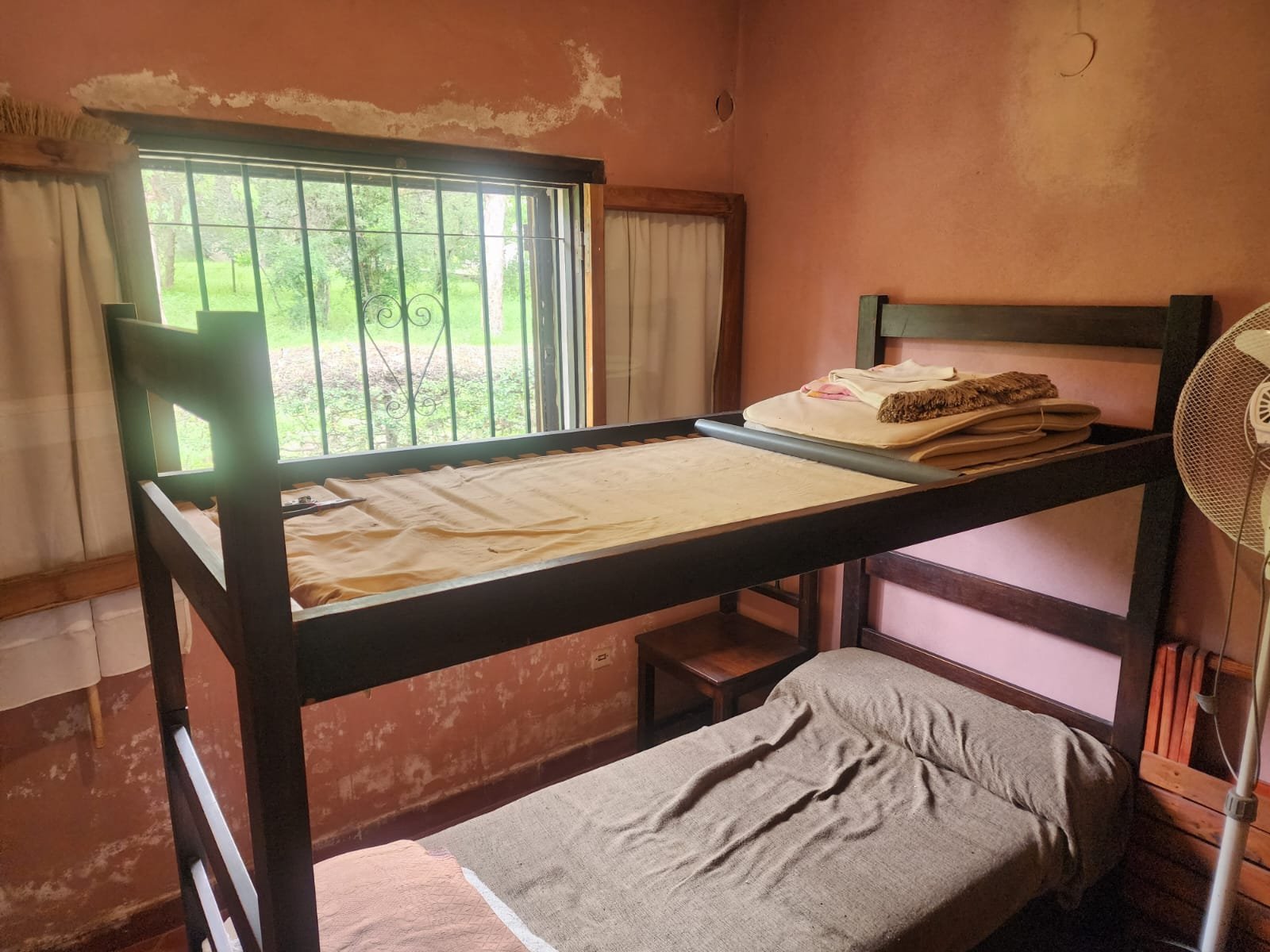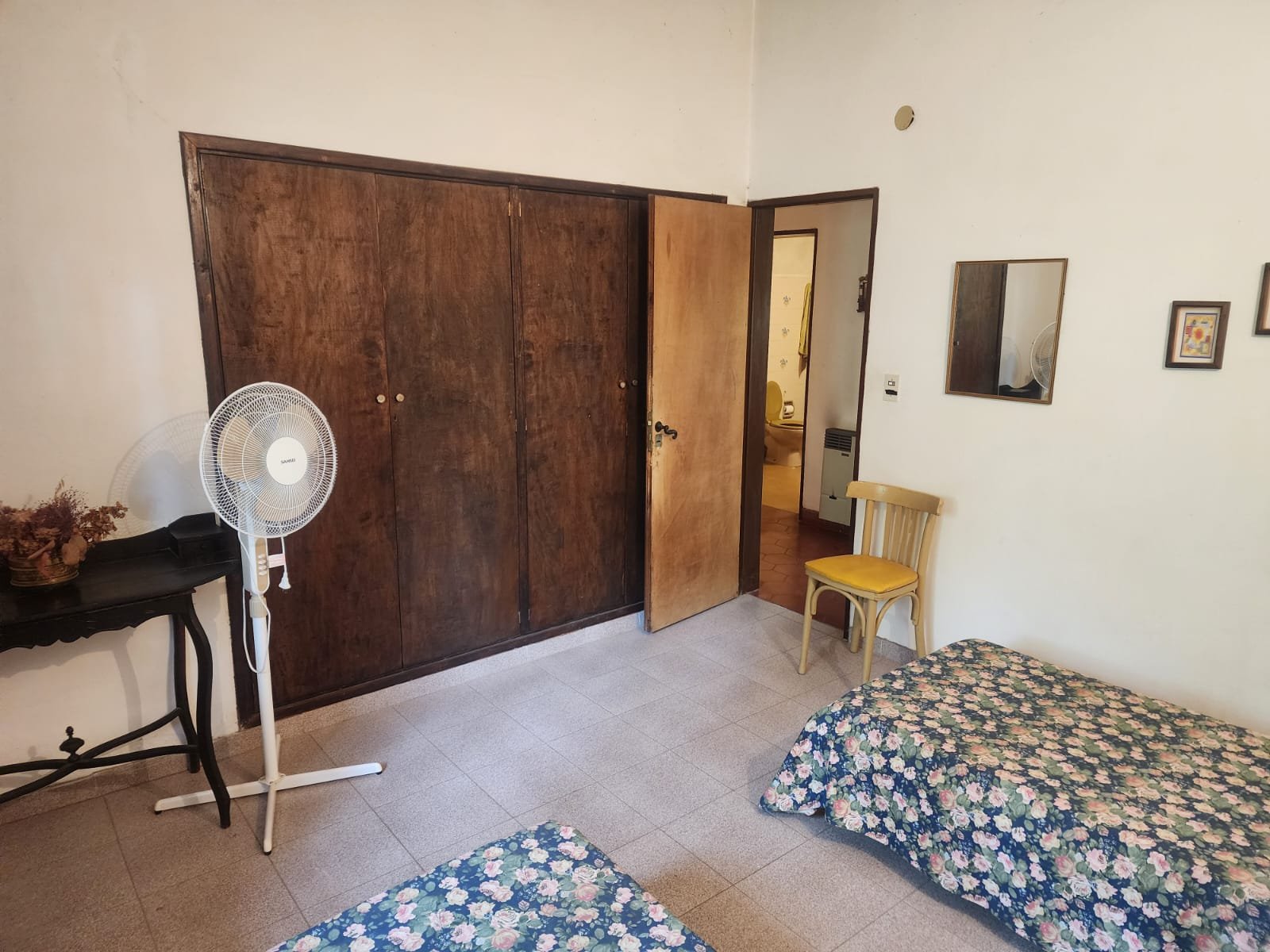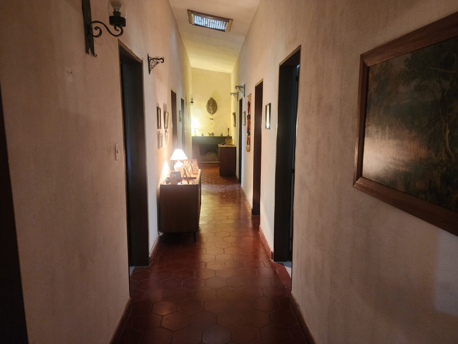 1 Pasillo largo que separa a mano derecha dos dormitorios y un baño, luego en forma espejada a mano izquierda lo mismo, dos dormitorios y un baño. Posee hogar al final del pasillo y calefactor en el medio de las habitaciones.