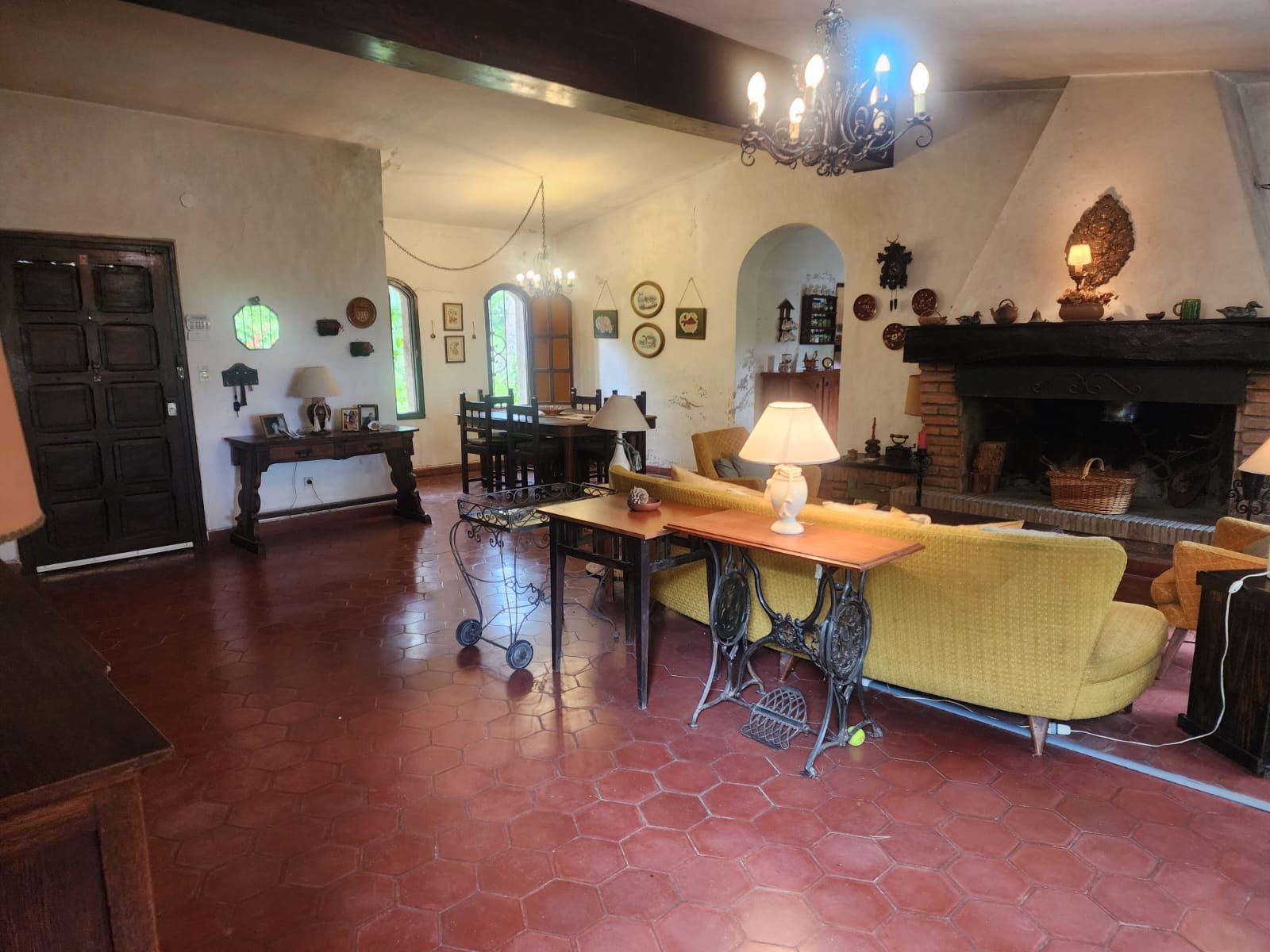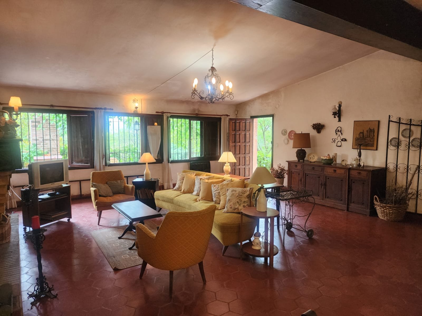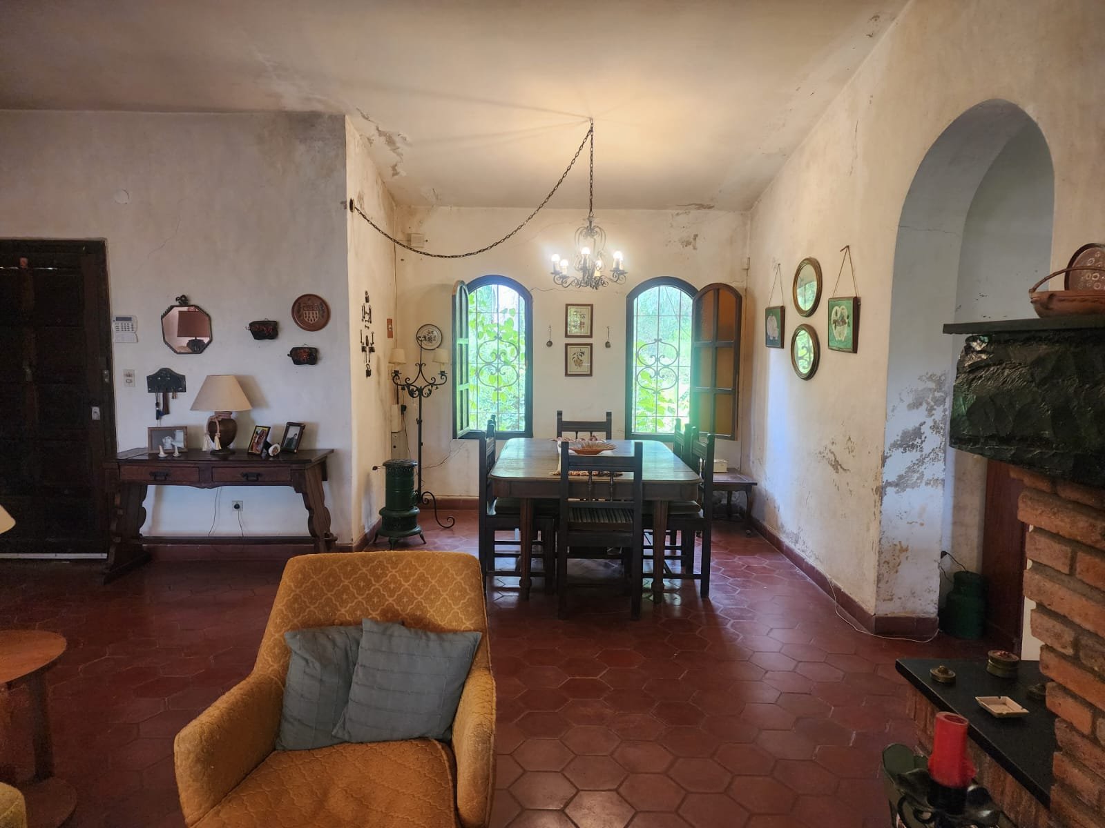 1 Living comedor de gran tamaño con ventanales para proporcionar luminosidad y ventilación. Este ambiente tiene hogar, calefactor y salamandra para calefaccionarse.