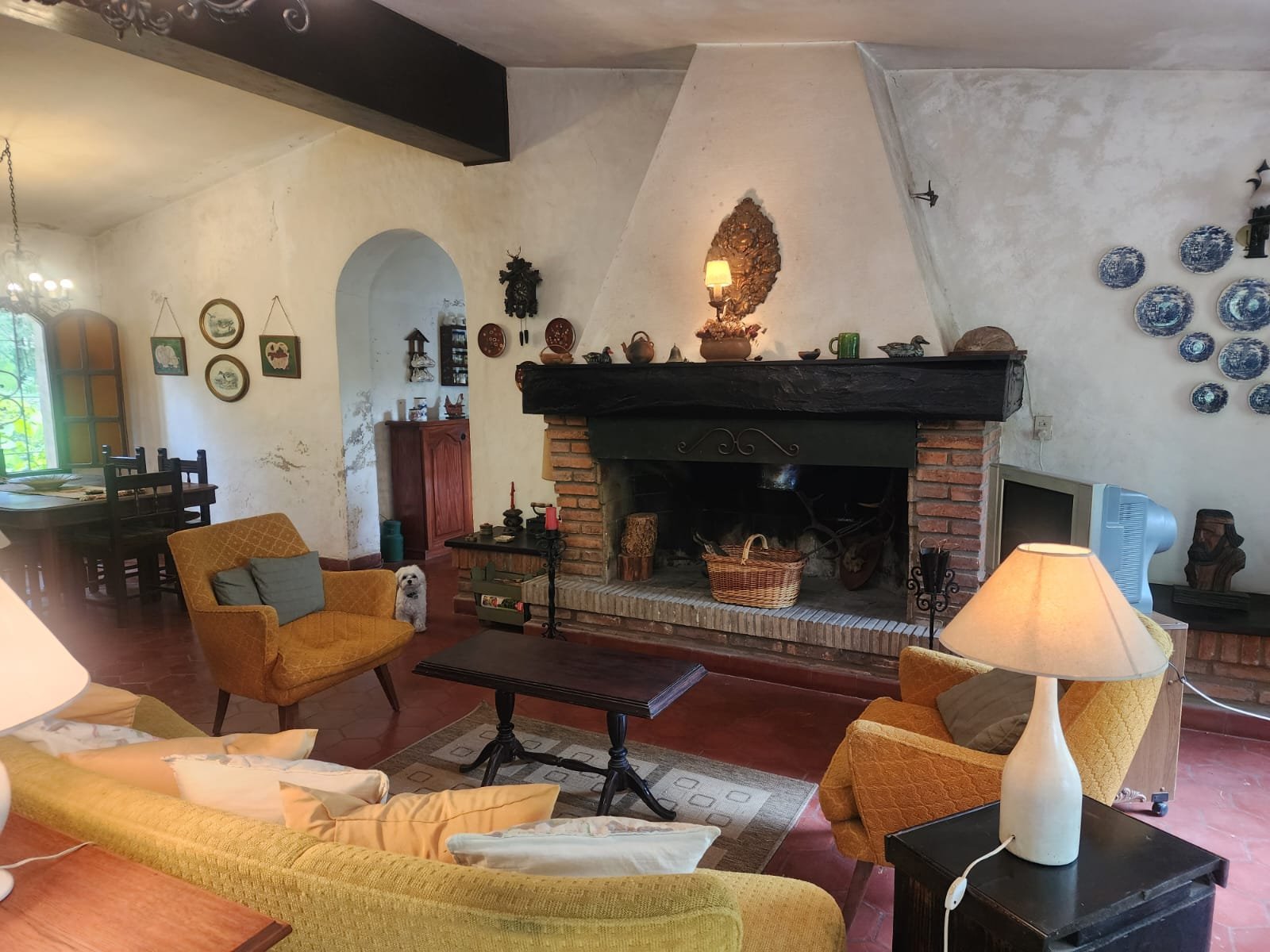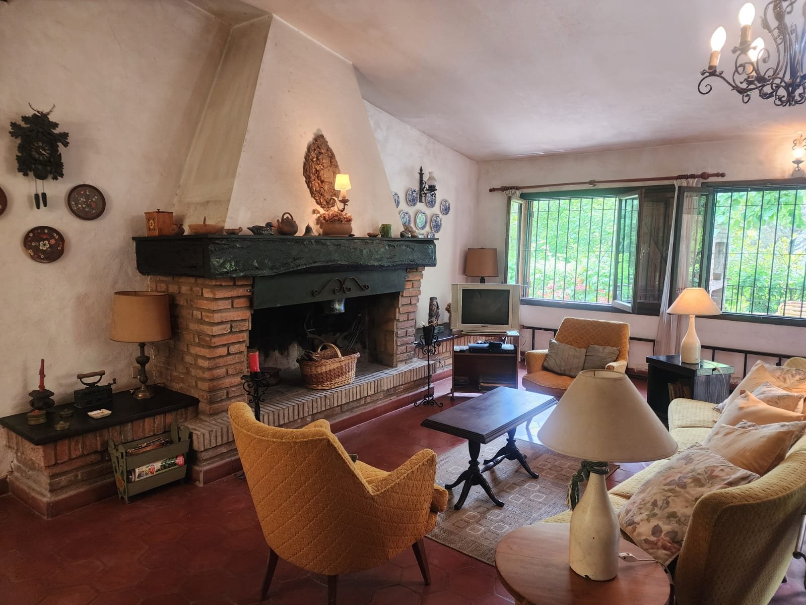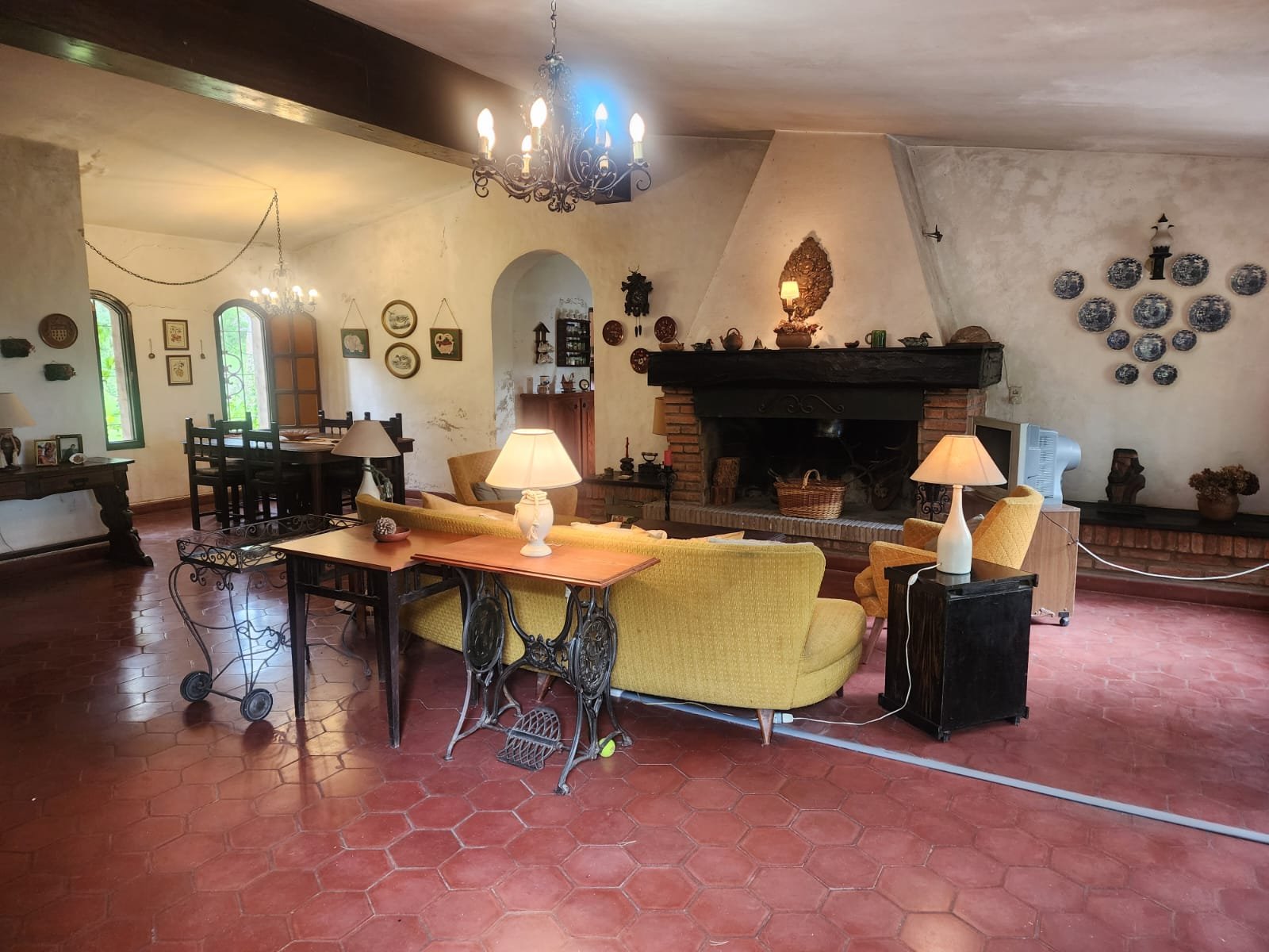 1 Living comedor de gran tamaño con ventanales para proporcionar luminosidad y ventilación. Este ambiente tiene hogar, calefactor y salamandra para calefaccionarse.
