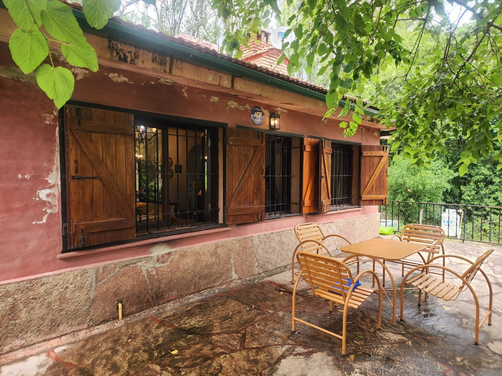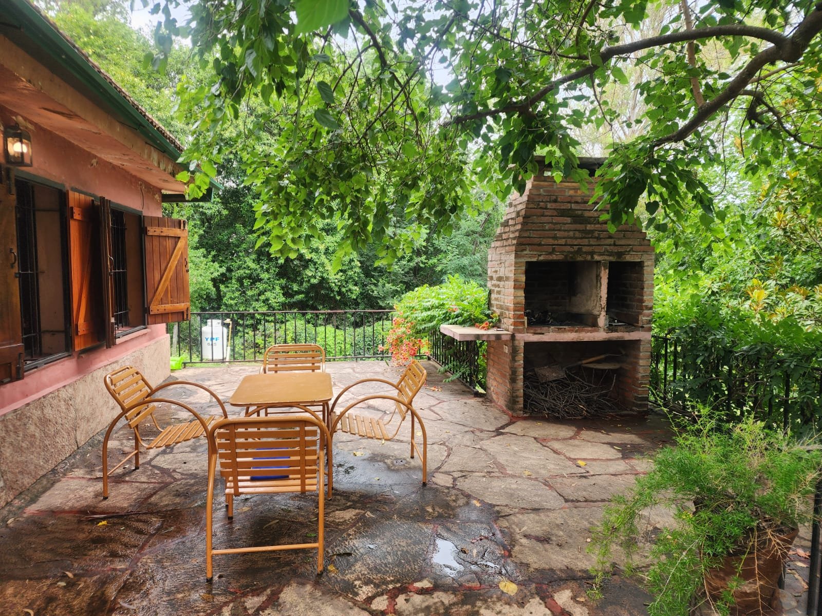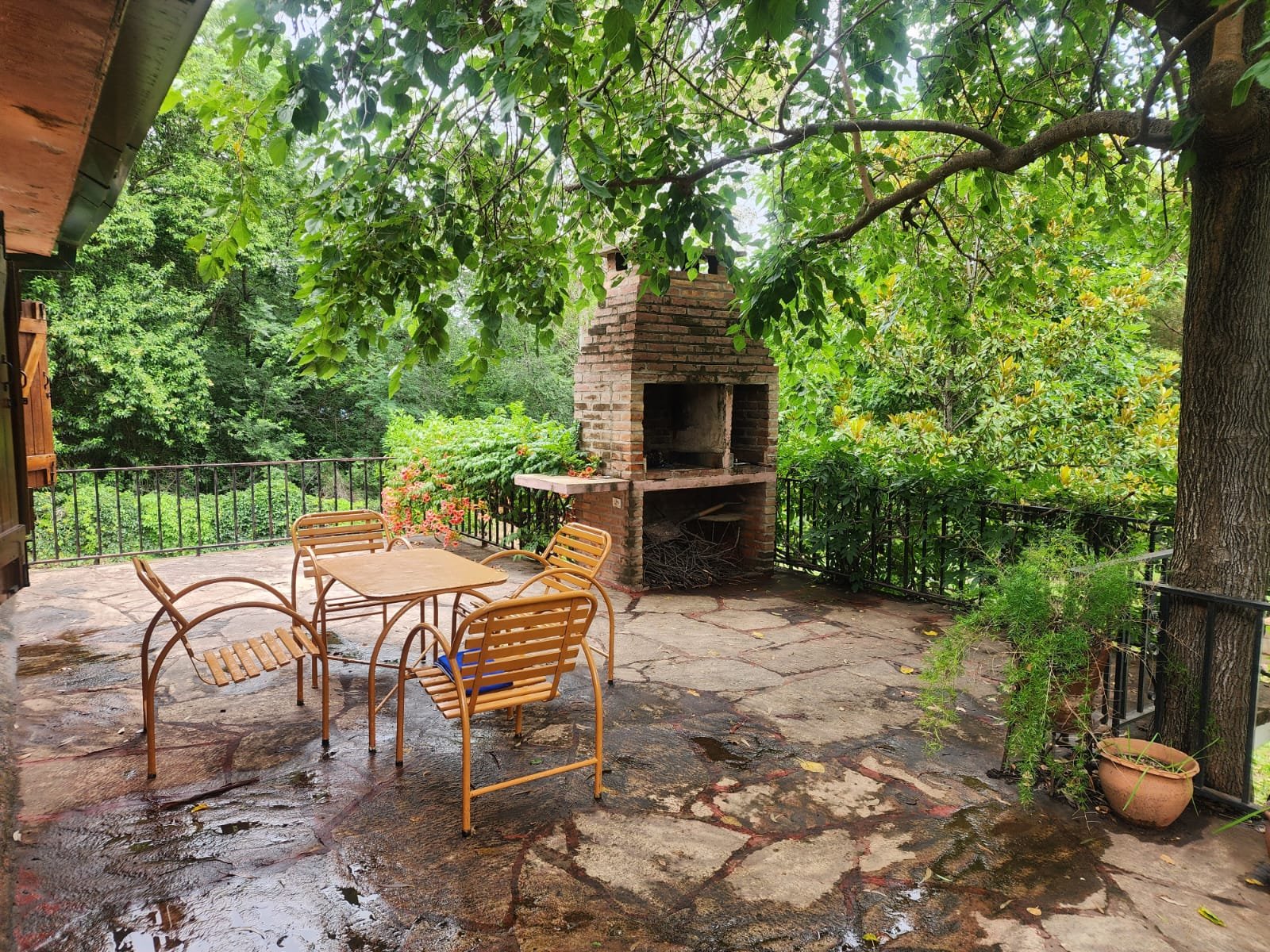 1 Balcón terraza con asador desde el cual se puede contemplar todo el parque y el paisaje. Este espacio tiene piso con lajas de piedra y barandas de hierro.
