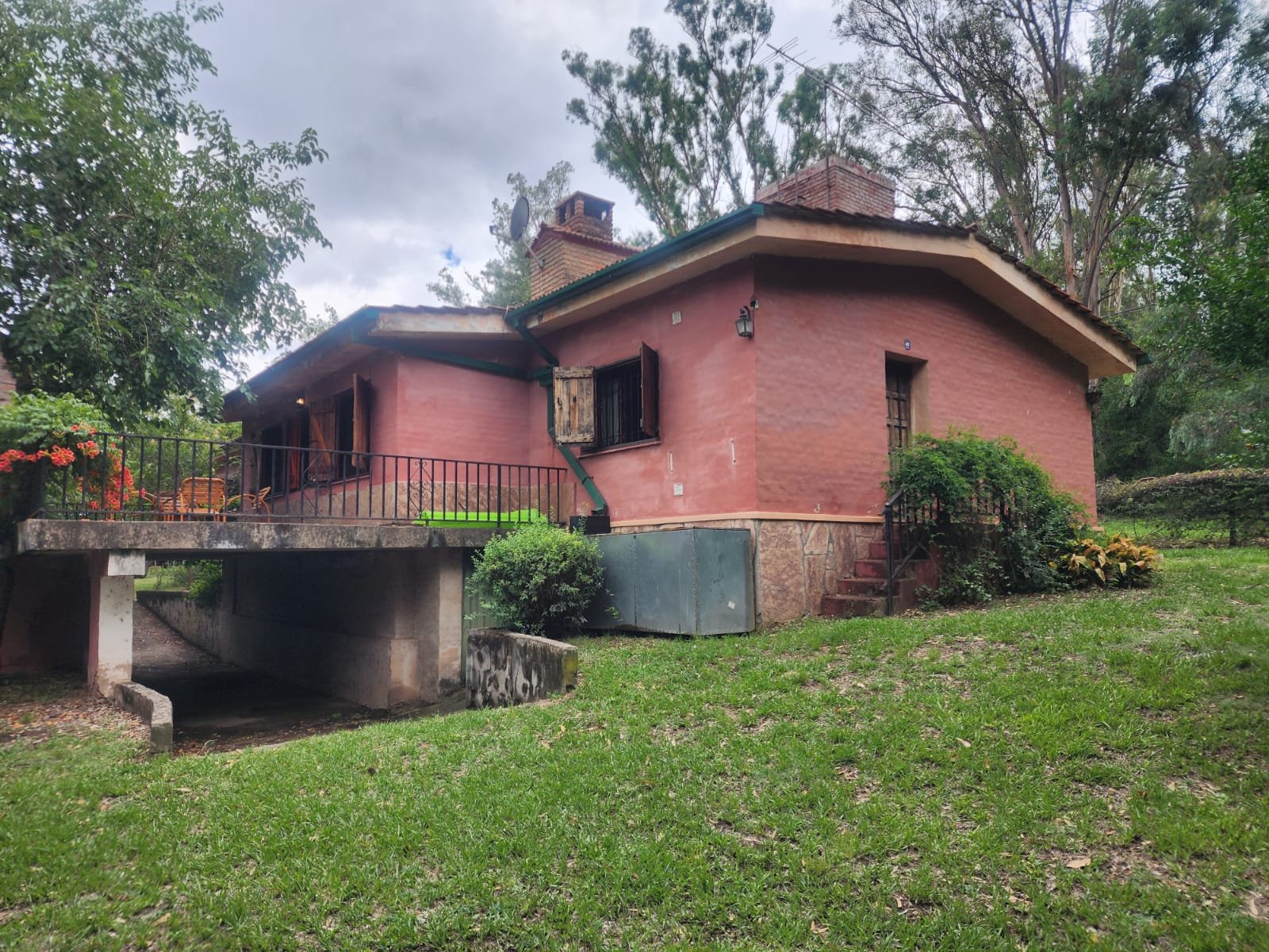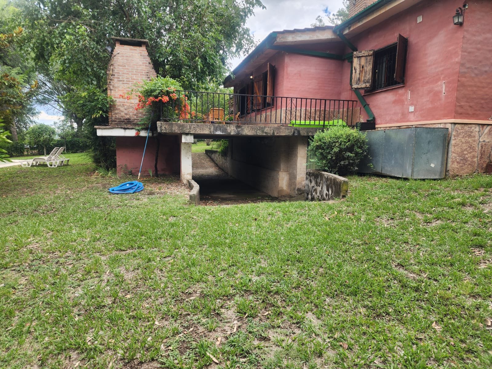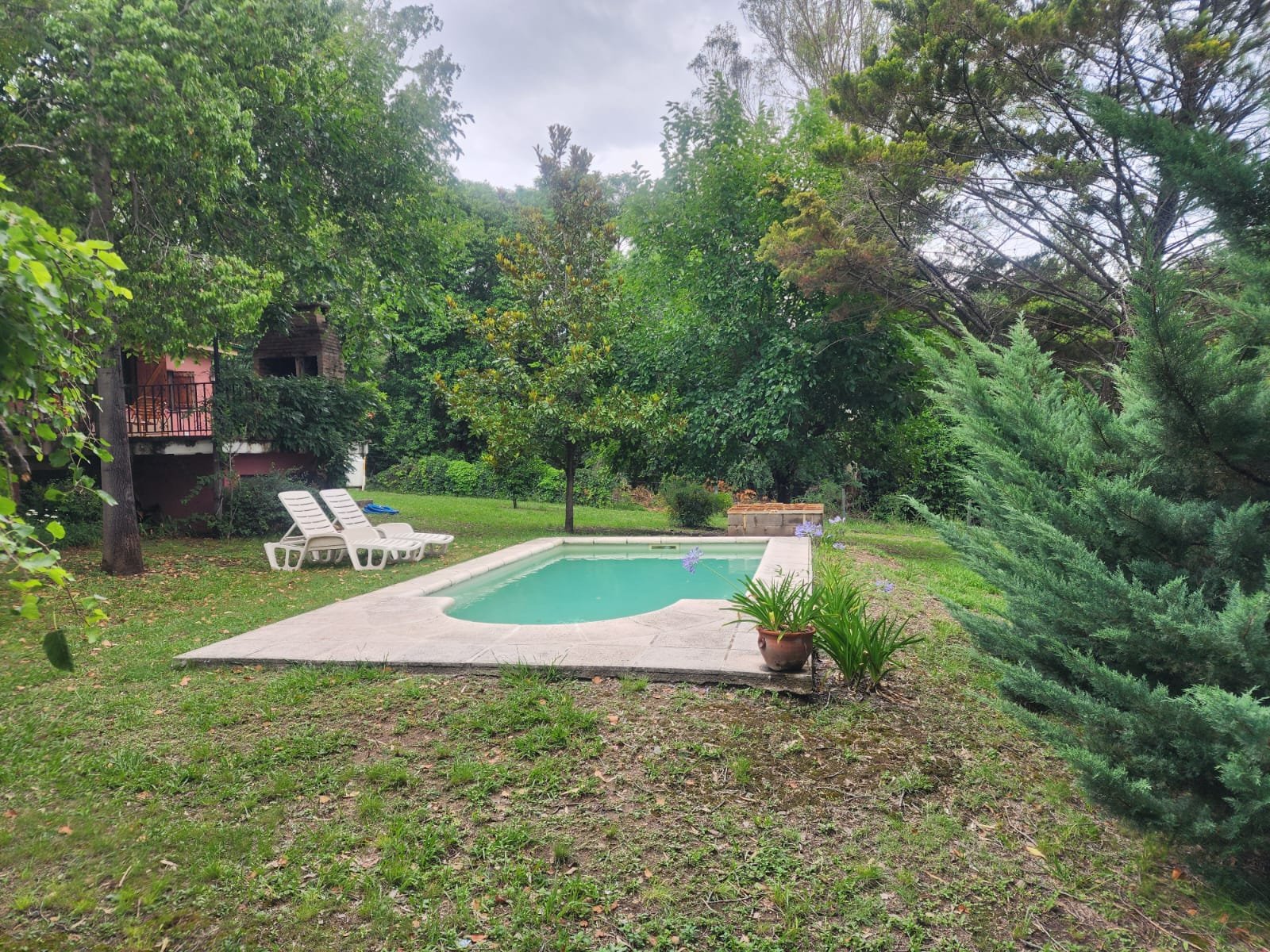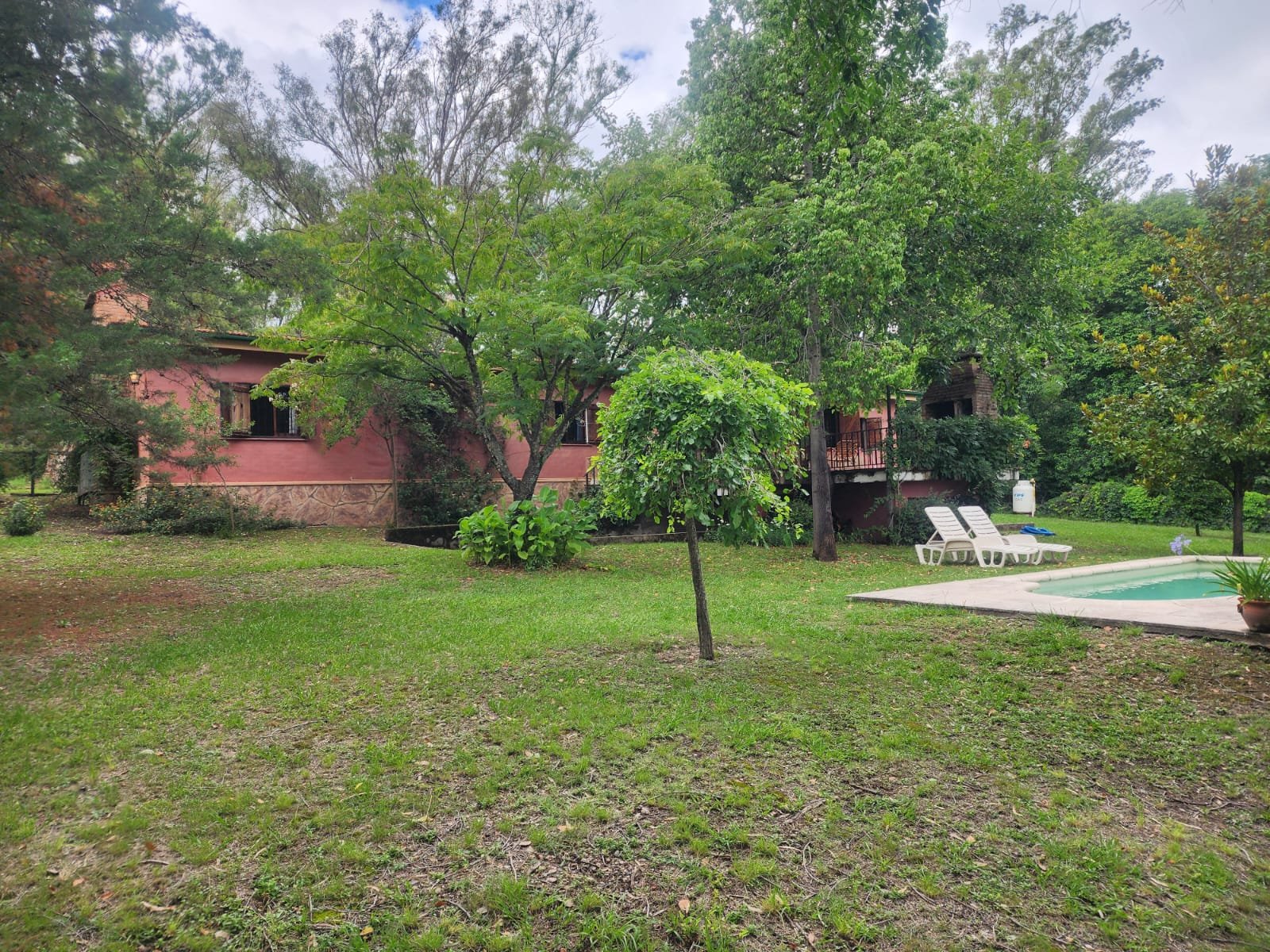 Por fuera se puede disfrutar de gran patio parquizado con mucho espacio libre para agregar otras construcciones. El parque tiene mucha variedad de árboles y plantas como mora, magnolia, pinos, laurel, aguaribay, dama de noche, glicina, etc.