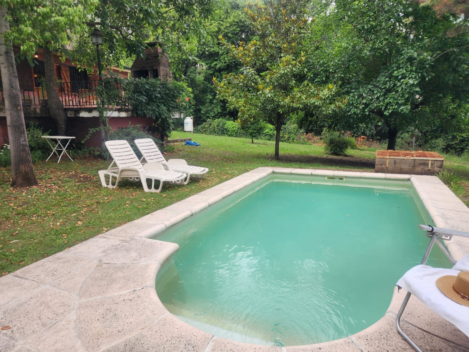 La pileta está construida con fibra de vidrio, mide 6 metros de largo x 3 metros de ancho, todo el equipo de filtrado completo y losetas térmicas a su alrededor.