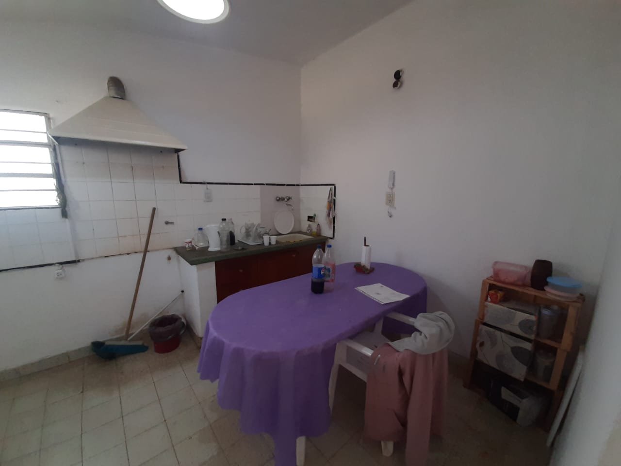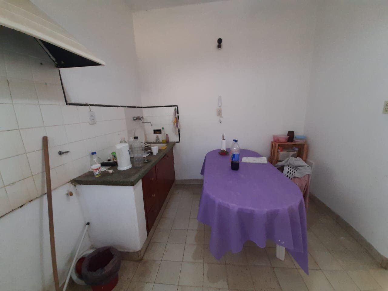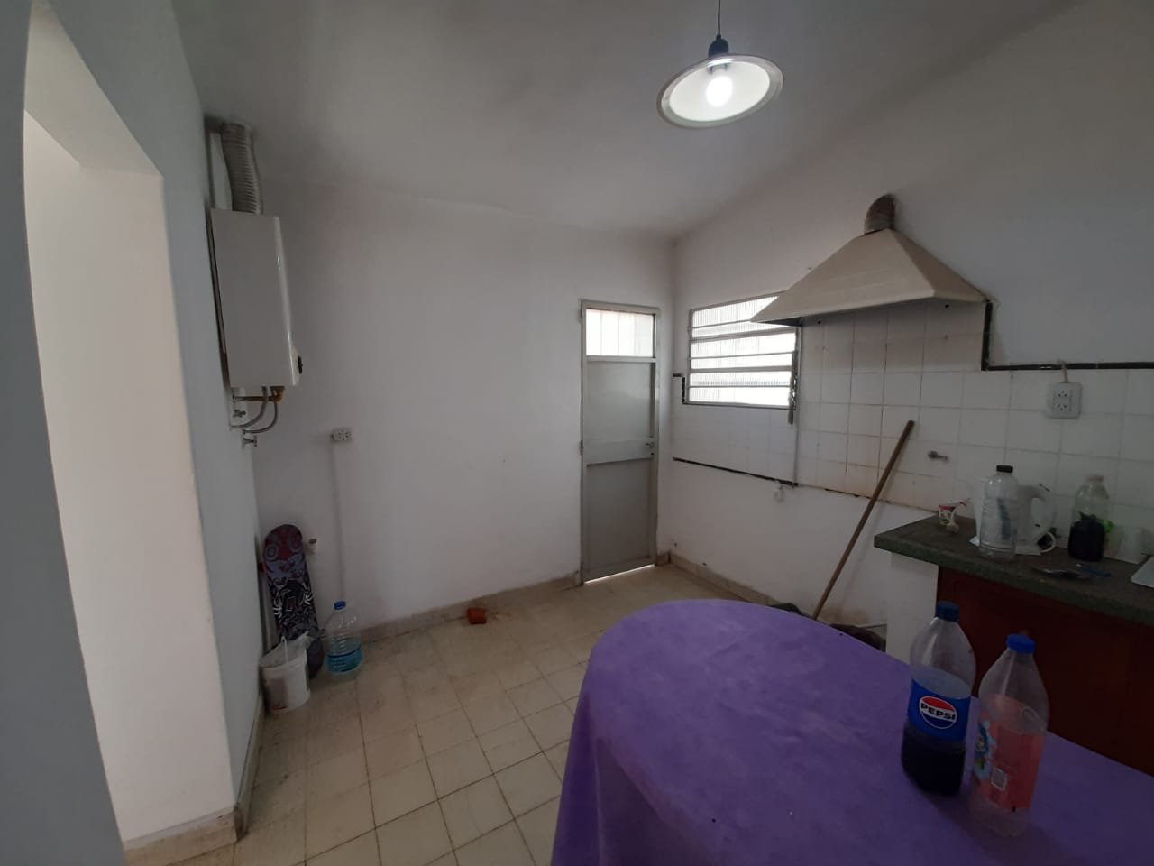 1 Cocina comedor con acceso desde el living y salida al patio trasero. La cocina se compone de calefón, conexión para agregar lavarropas, campana, bajomesada de madera con mesada de mármol más bacha de cerámica blanca y la pared revestida con azulejos.