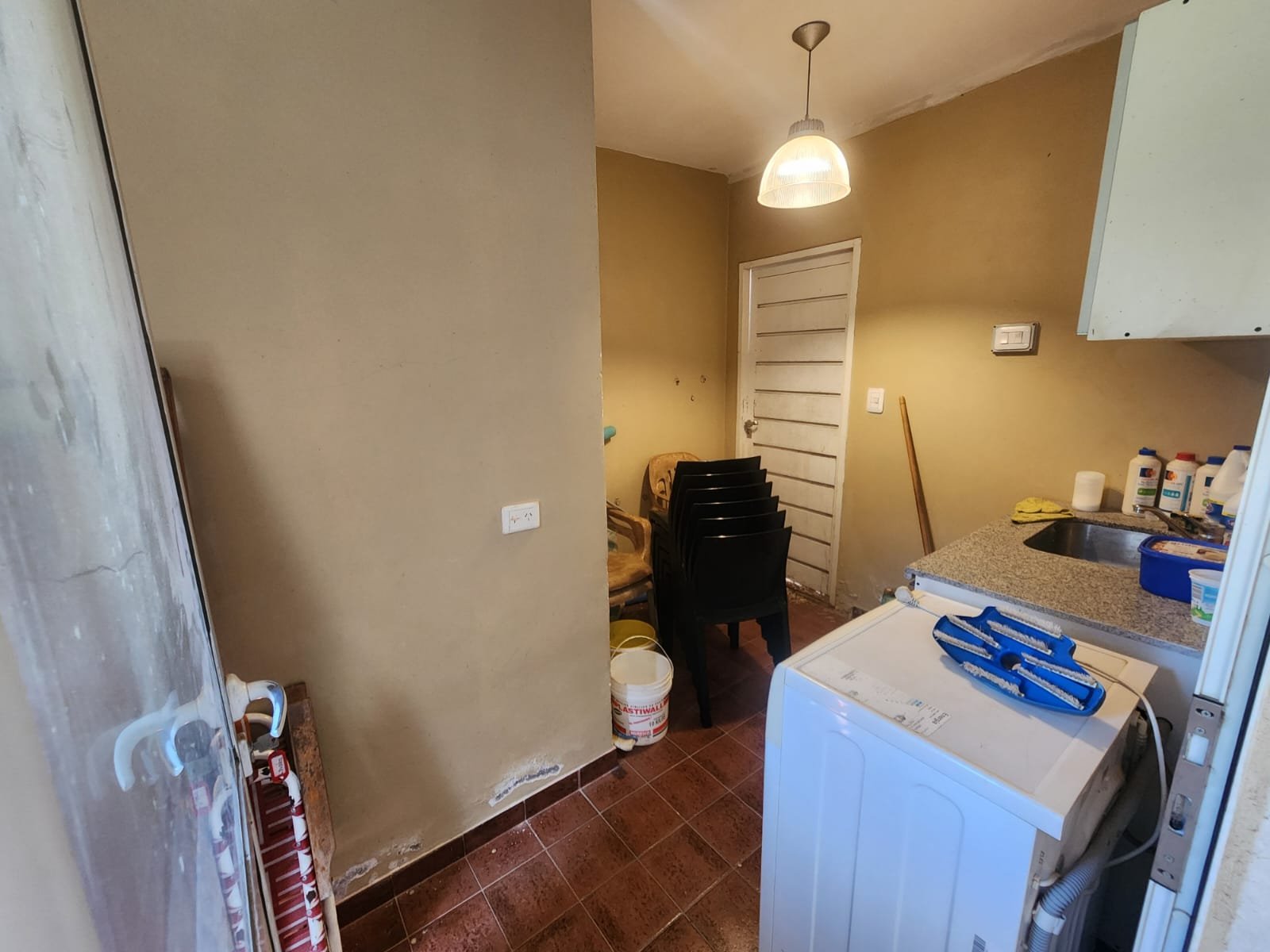 1 Lavadero con mobiliario de melamina (alacena y bajomesada mas mesada de granito con bacha de acero inoxidable) y conexión para lavarropas automático. Este cuarto se conecta con un patio interno destinado para tender la ropa, cerrado con muros para evitar que se vea desde otro lugar y descubierto para que ingrese la luz solar.