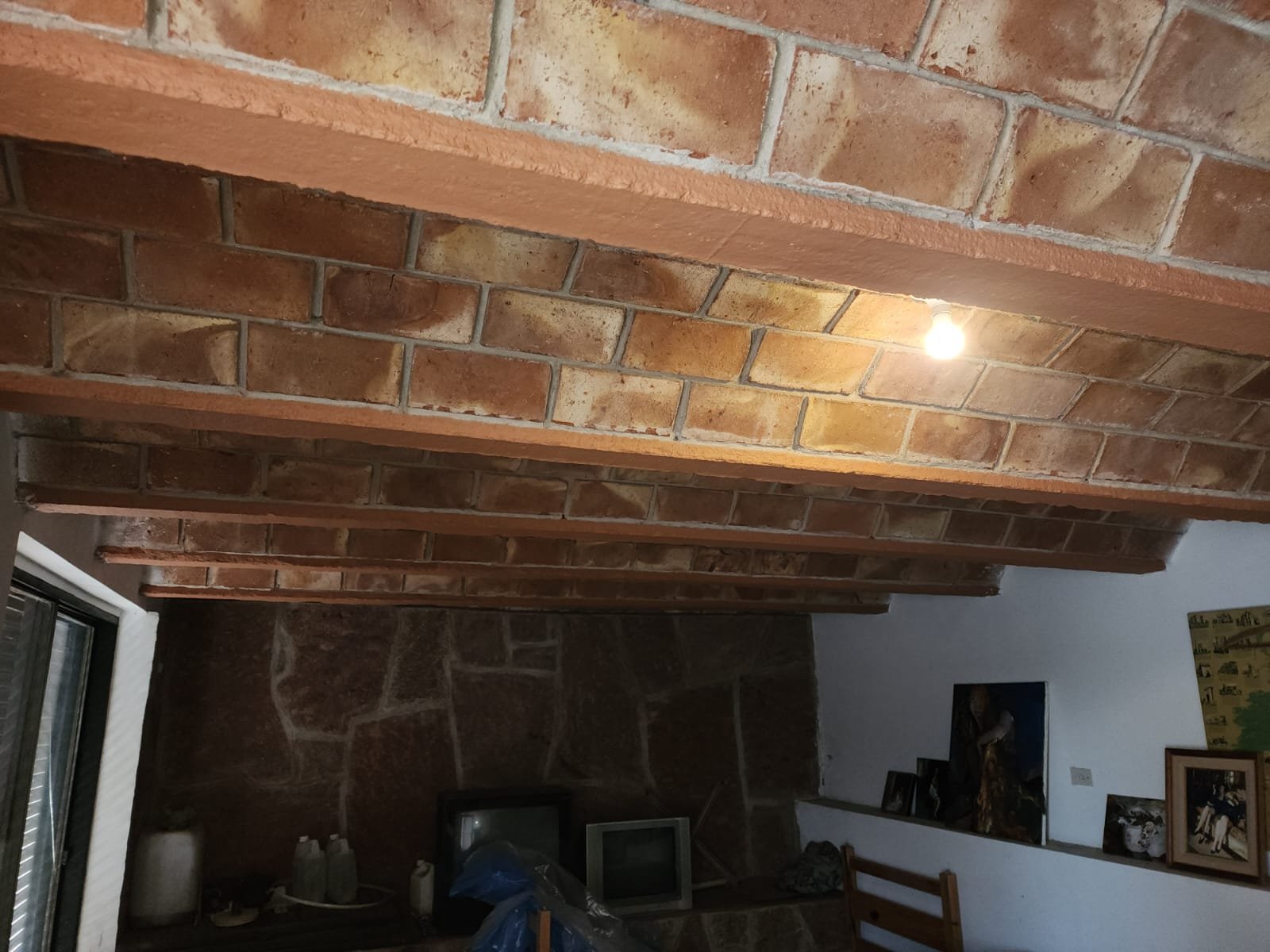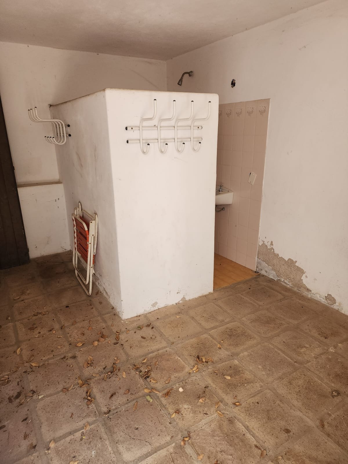 El departamento se encuentra detrás del quincho en el subsuelo aprovechando el desnivel del terreno. Este mismo está a reciclar, es de gran tamaño y tiene lista la estructura, cañerías de agua y gas, sistema eléctrico, etc. Faltaría colocar la instalación de la cocina, baño y las aberturas.