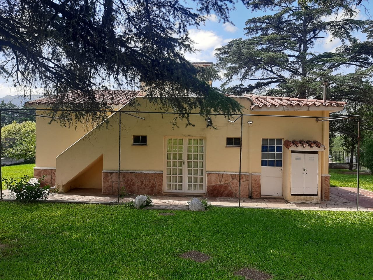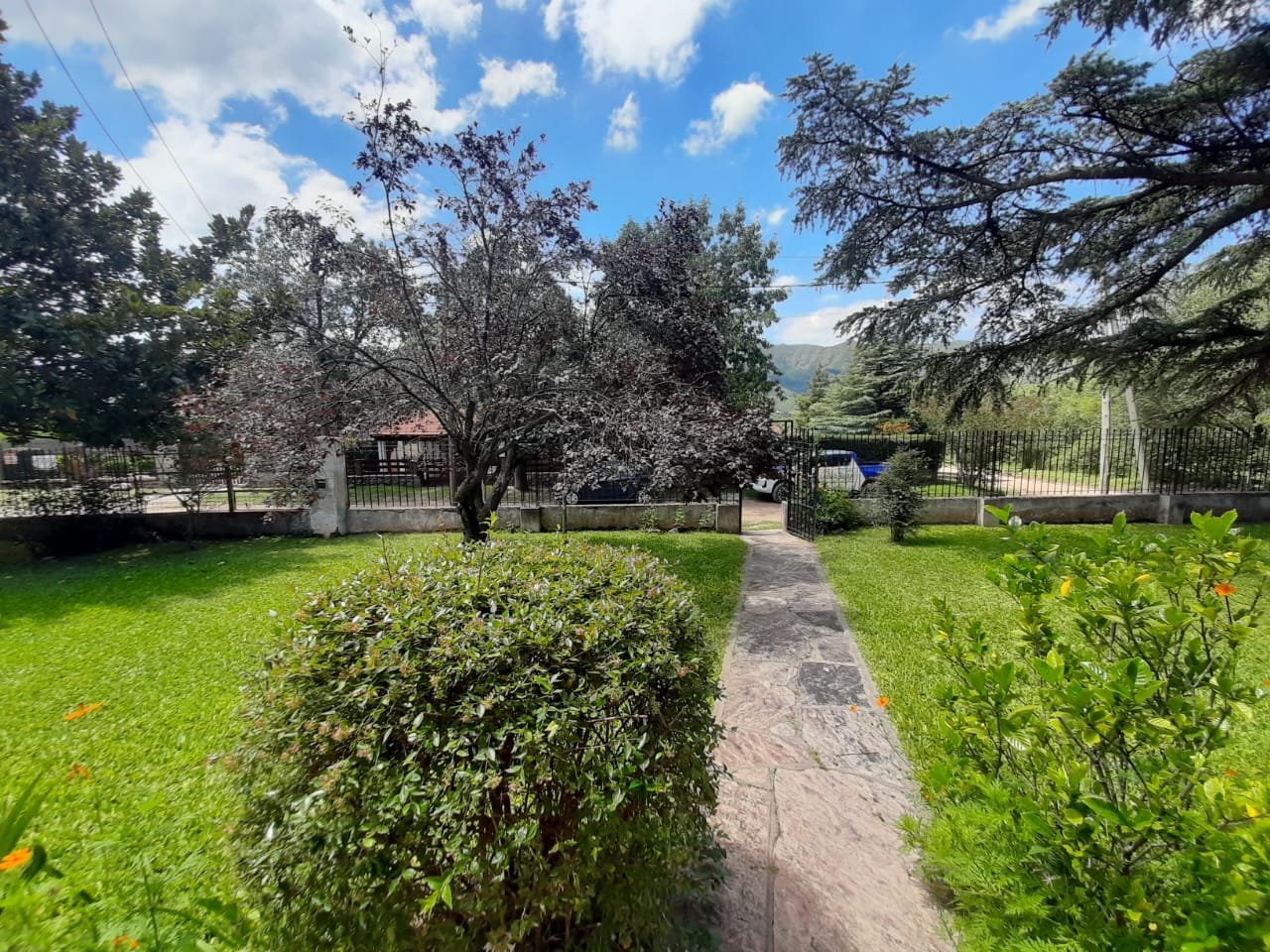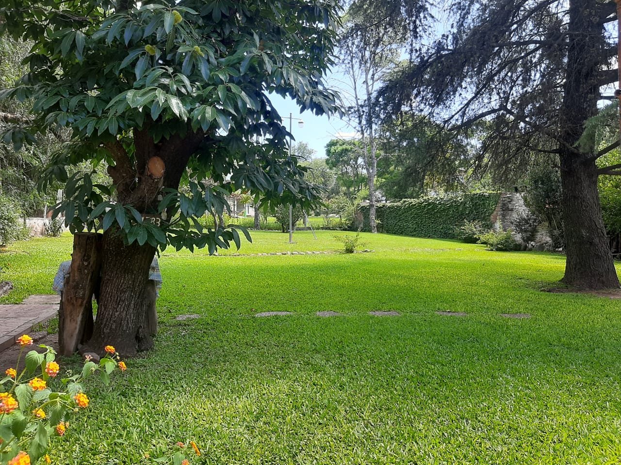Se encuentra con todo su perímetro cerrado con rejas al frente y portón corredizo, muro de material a los costados y alambre romboidal al fondo. En el frente tiene patio parquizado rodeado de árboles frutales como ciruelos, damascos, manzano, laurel y plantas. Al fondo tiene hermoso patio parquizado súper amplio con espacio para construir otras propiedades y pileta. Todo el parque tiene canillas de riego y farolas con fotocélulas.