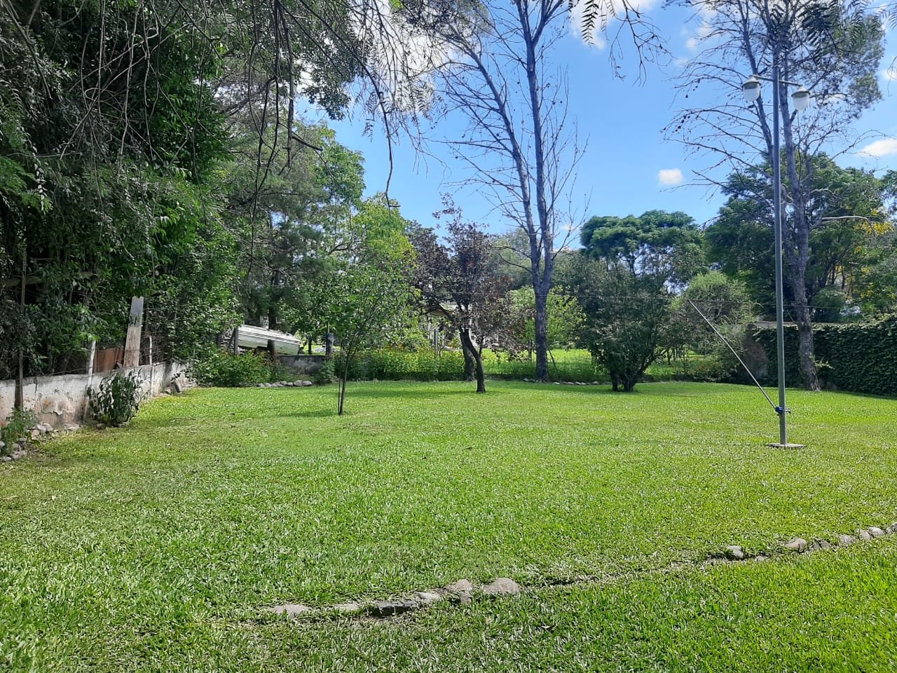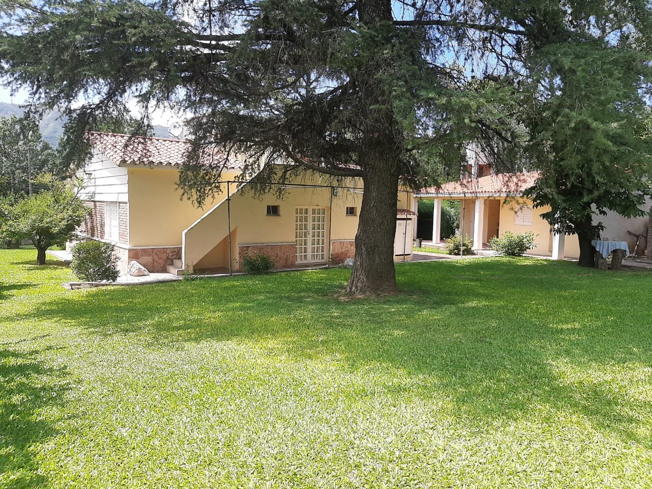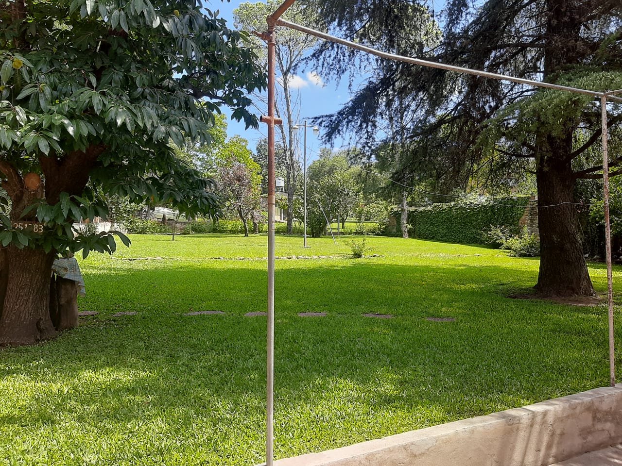 Se encuentra con todo su perímetro cerrado con rejas al frente y portón corredizo, muro de material a los costados y alambre romboidal al fondo. En el frente tiene patio parquizado rodeado de árboles frutales como ciruelos, damascos, manzano, laurel y plantas. Al fondo tiene hermoso patio parquizado súper amplio con espacio para construir otras propiedades y pileta. Todo el parque tiene canillas de riego y farolas con fotocélulas.