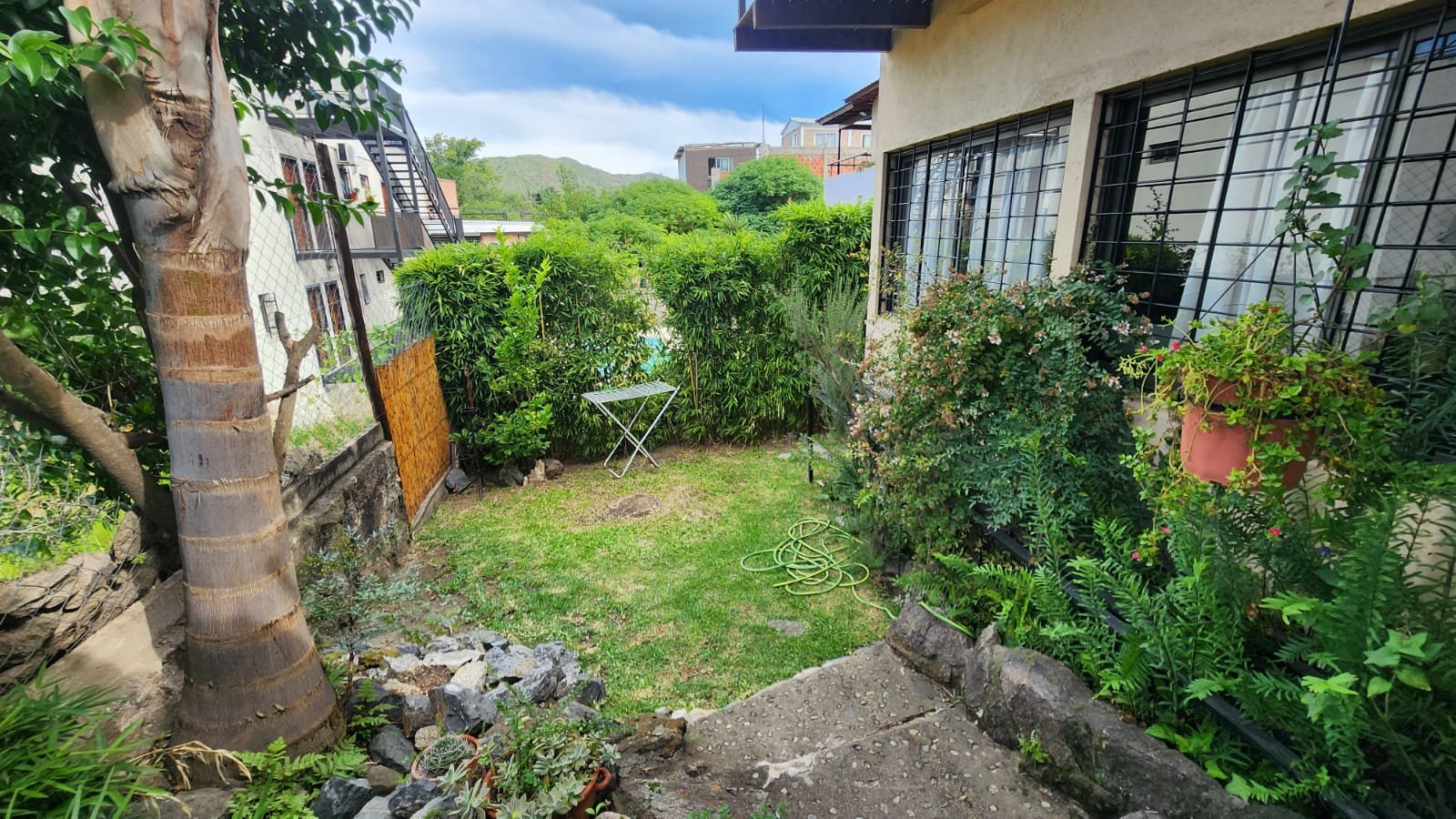 Bajando unos escalones en desnivel se accede al patio parquizado con gran variedad de plantas y espacio ideal para incorporar jacuzzi y disfrutar del entorno natural.