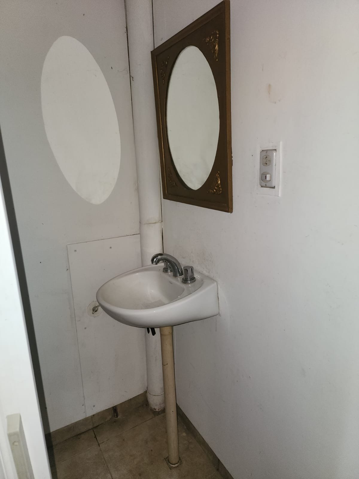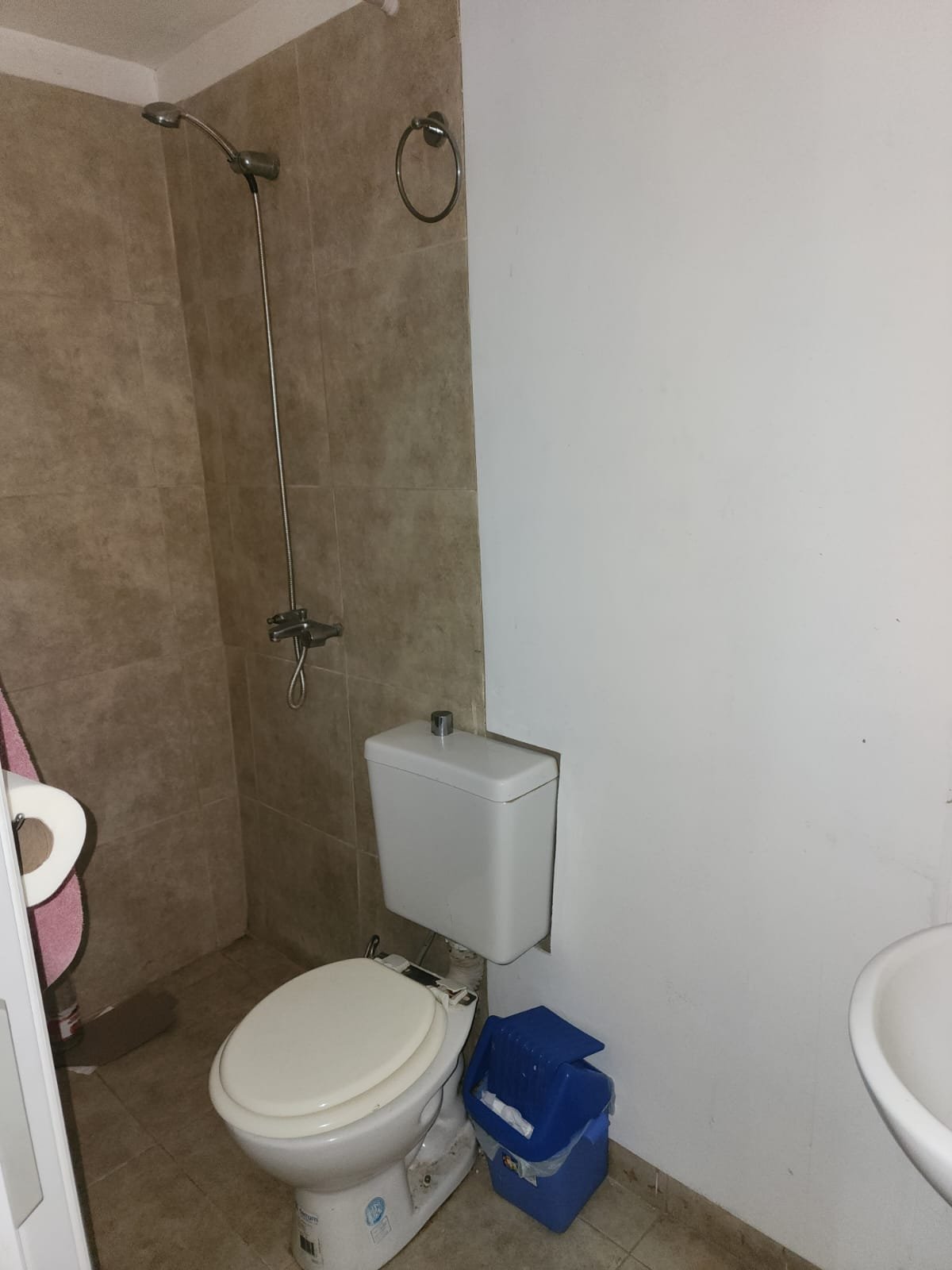 1 Segundo dormitorio amplio con pileta para lavarse las manos con base de madera y bacha de acero inoxidable, ventilador de techo, ventana con vista a la cochera y un pequeño baño en suite con pileta para lavarse las manos, inodoro y ducha, (sin bidet).