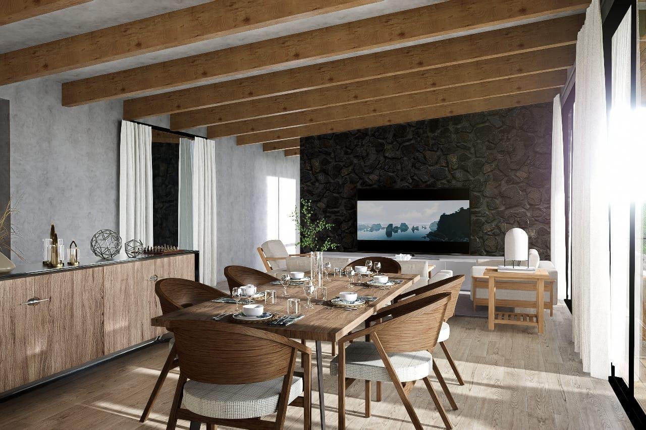 El terreno tiene leve pendiente positiva desde la costa del rio con parte del suelo pedregoso. Posee un proyecto con planos aprobados de 150m2 de superficie cubierta total, listo para edificar.