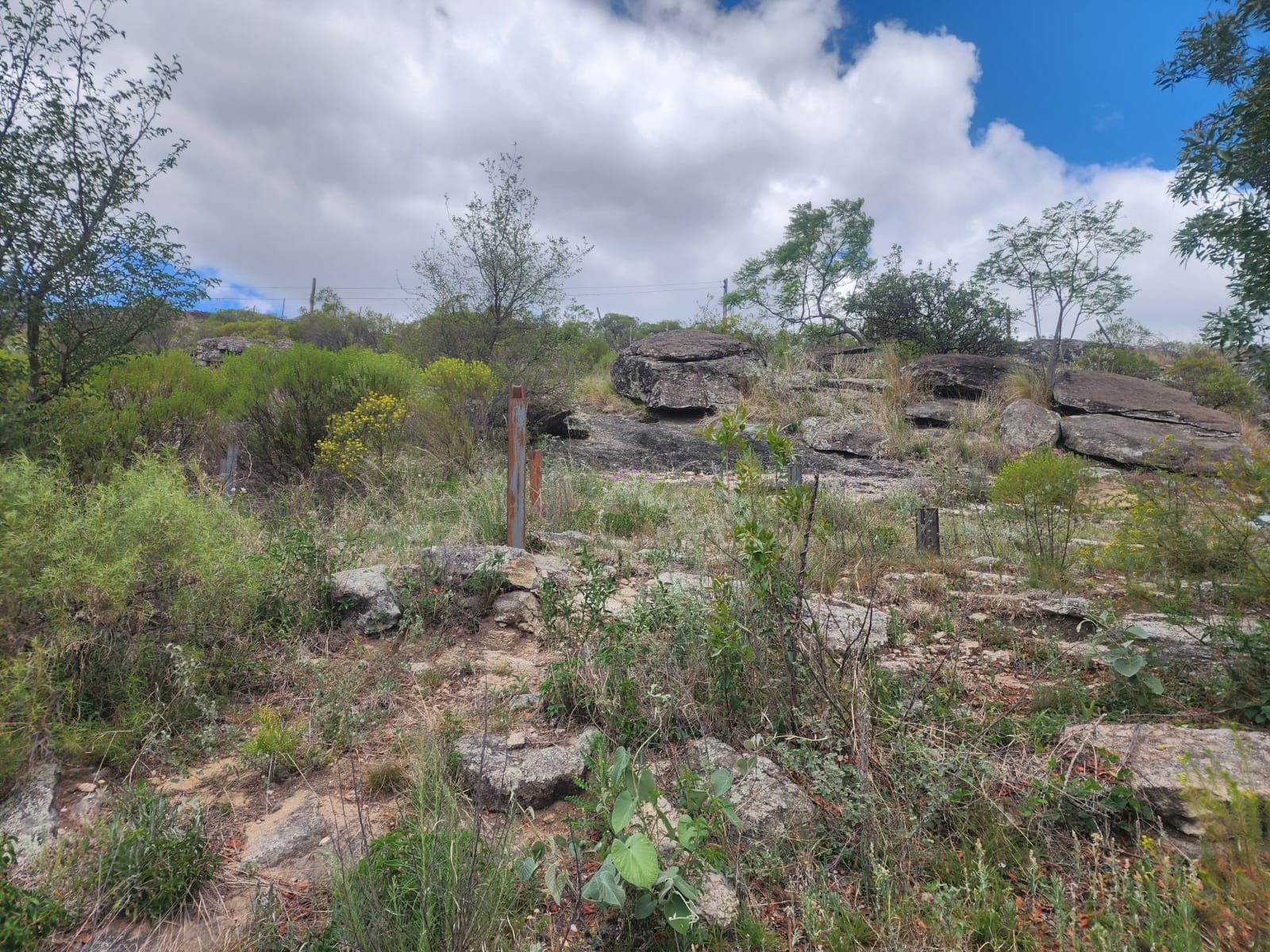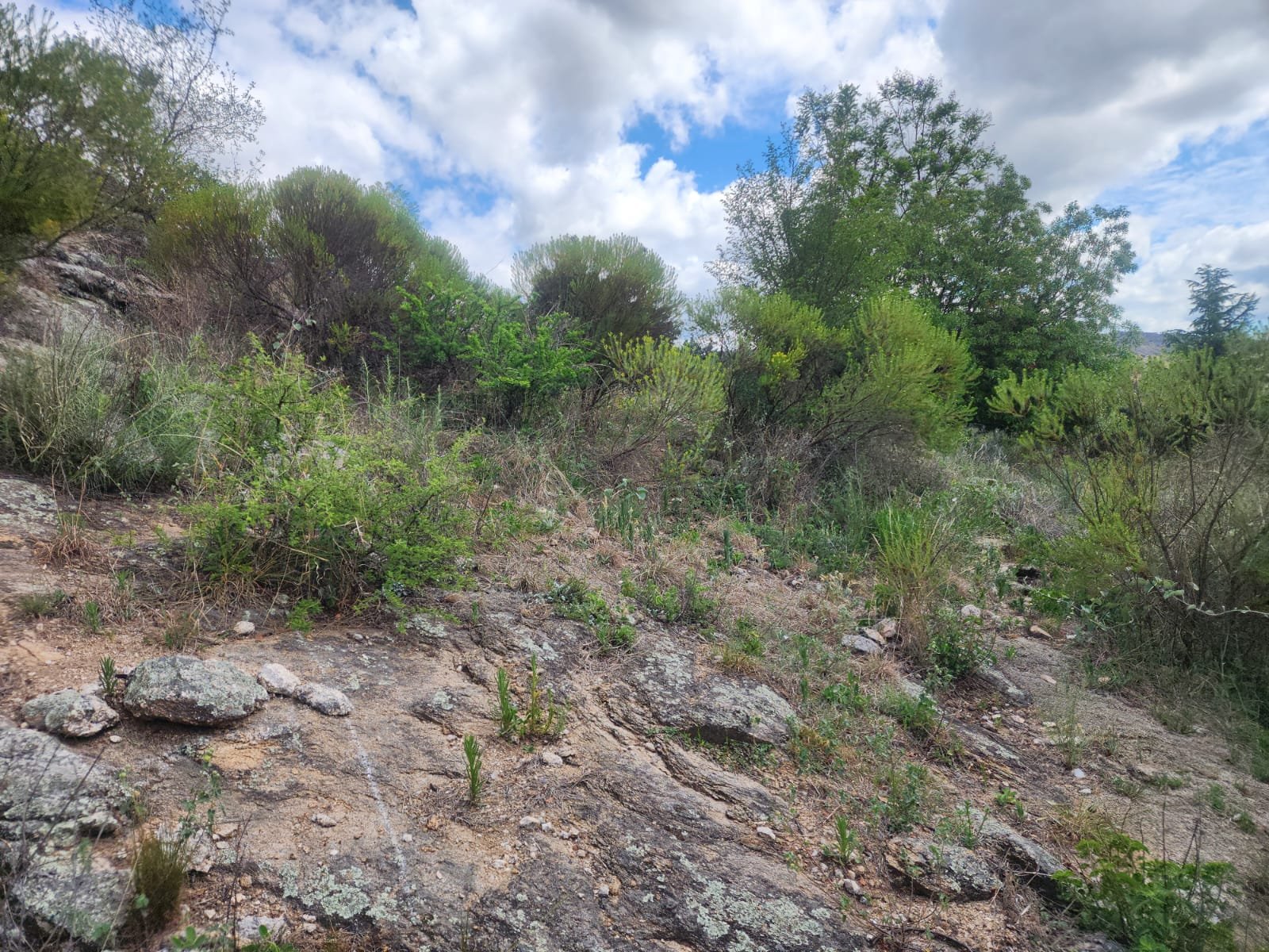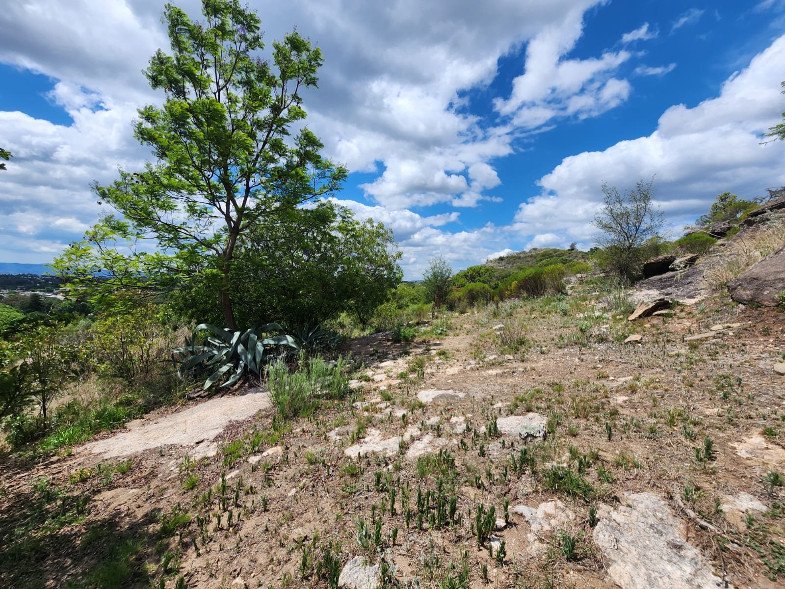 El terreno presenta topografía de montaña con piedras grandes, flora autóctona y pendiente positiva que favorece para apreciar la vista. El perímetro está delimitado con postes y partes con alambre.