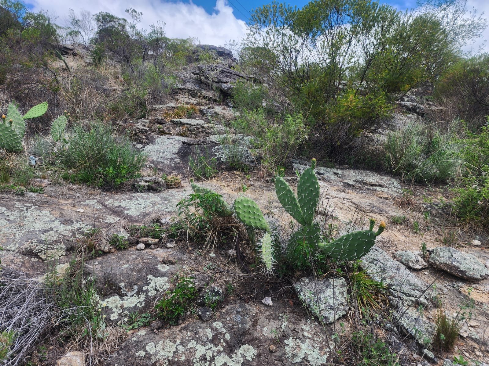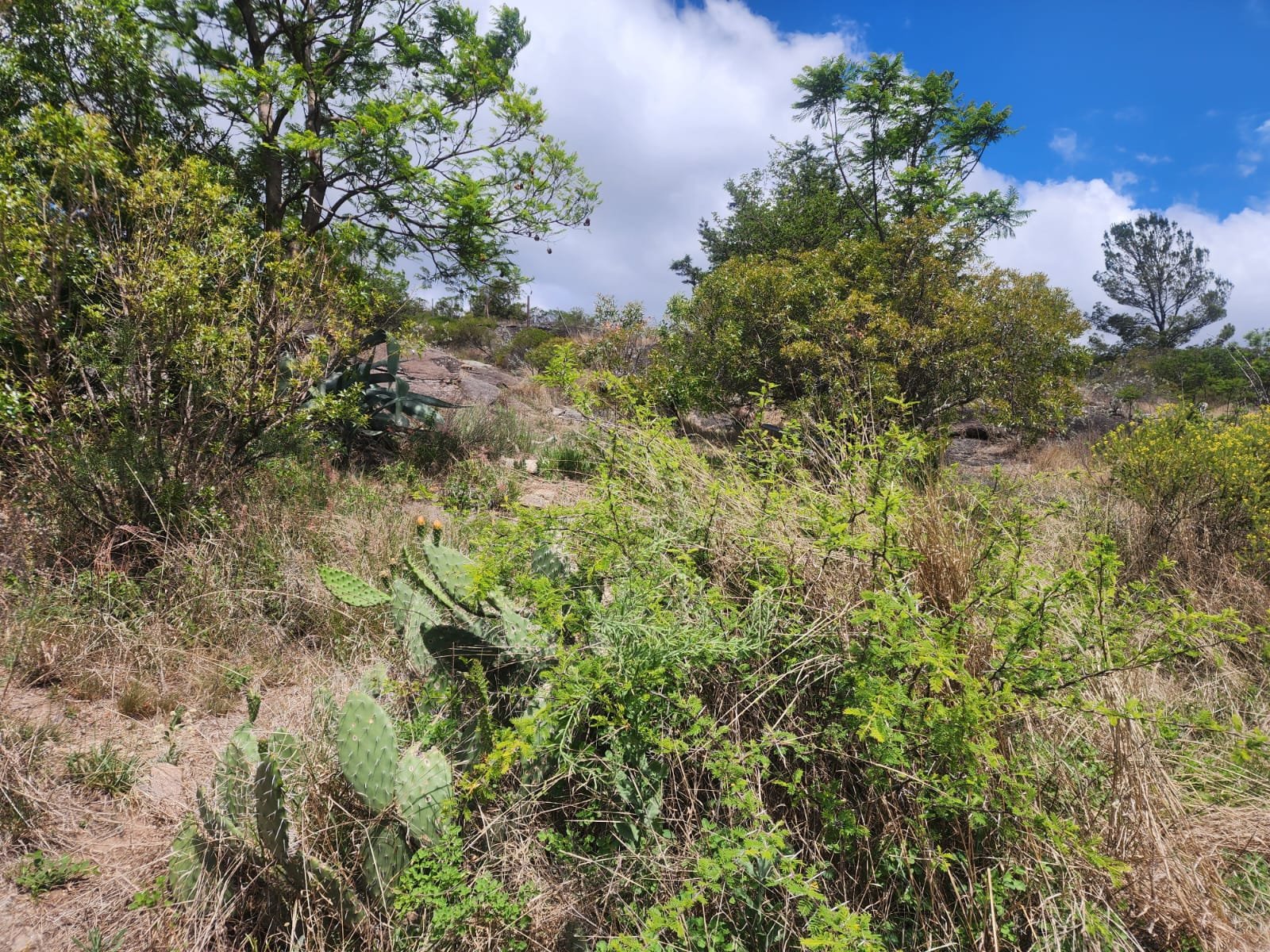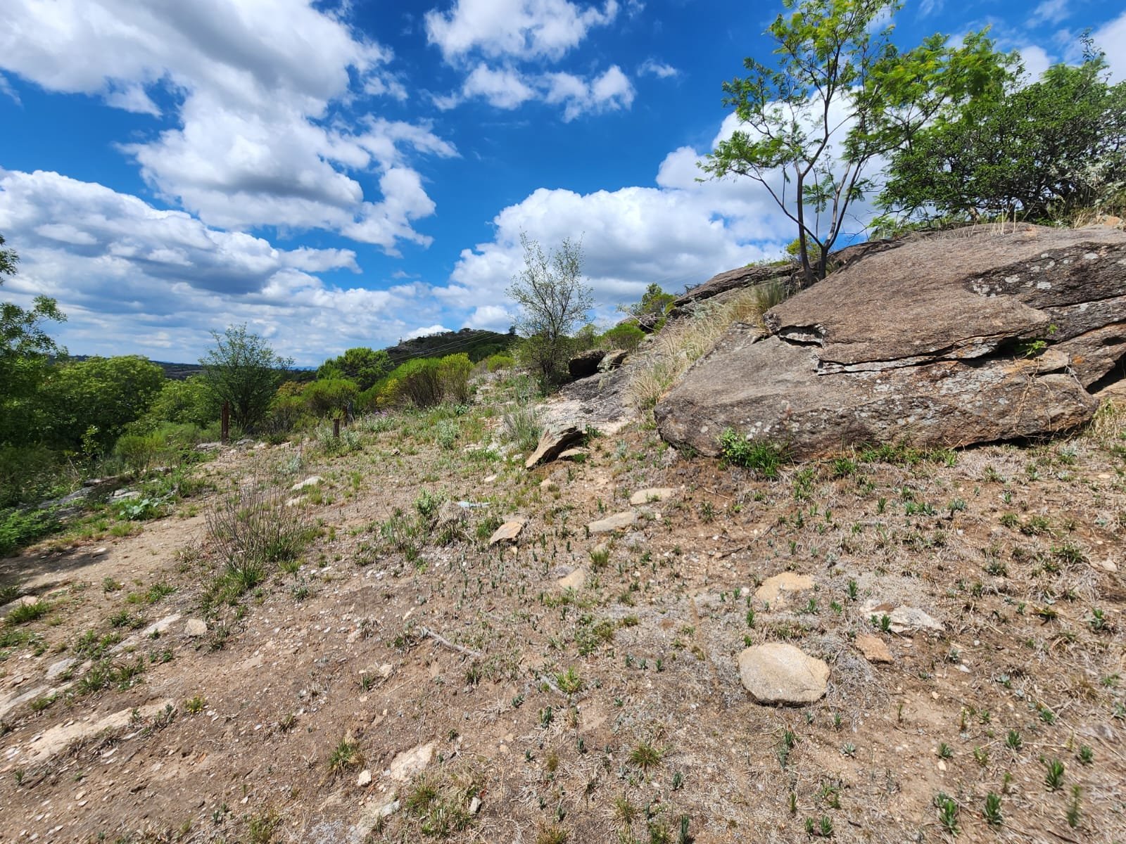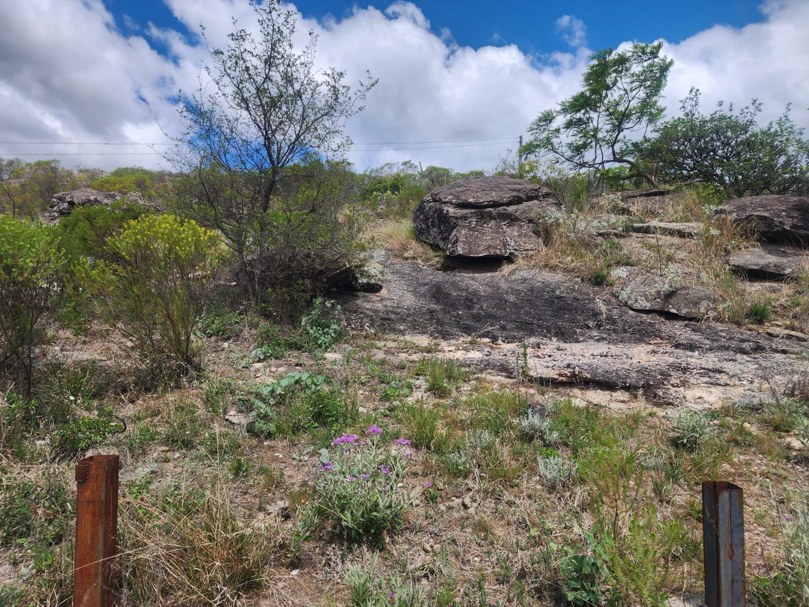 El terreno presenta topografía de montaña con piedras grandes, flora autóctona y pendiente positiva que favorece para apreciar la vista. El perímetro está delimitado con postes y partes con alambre.