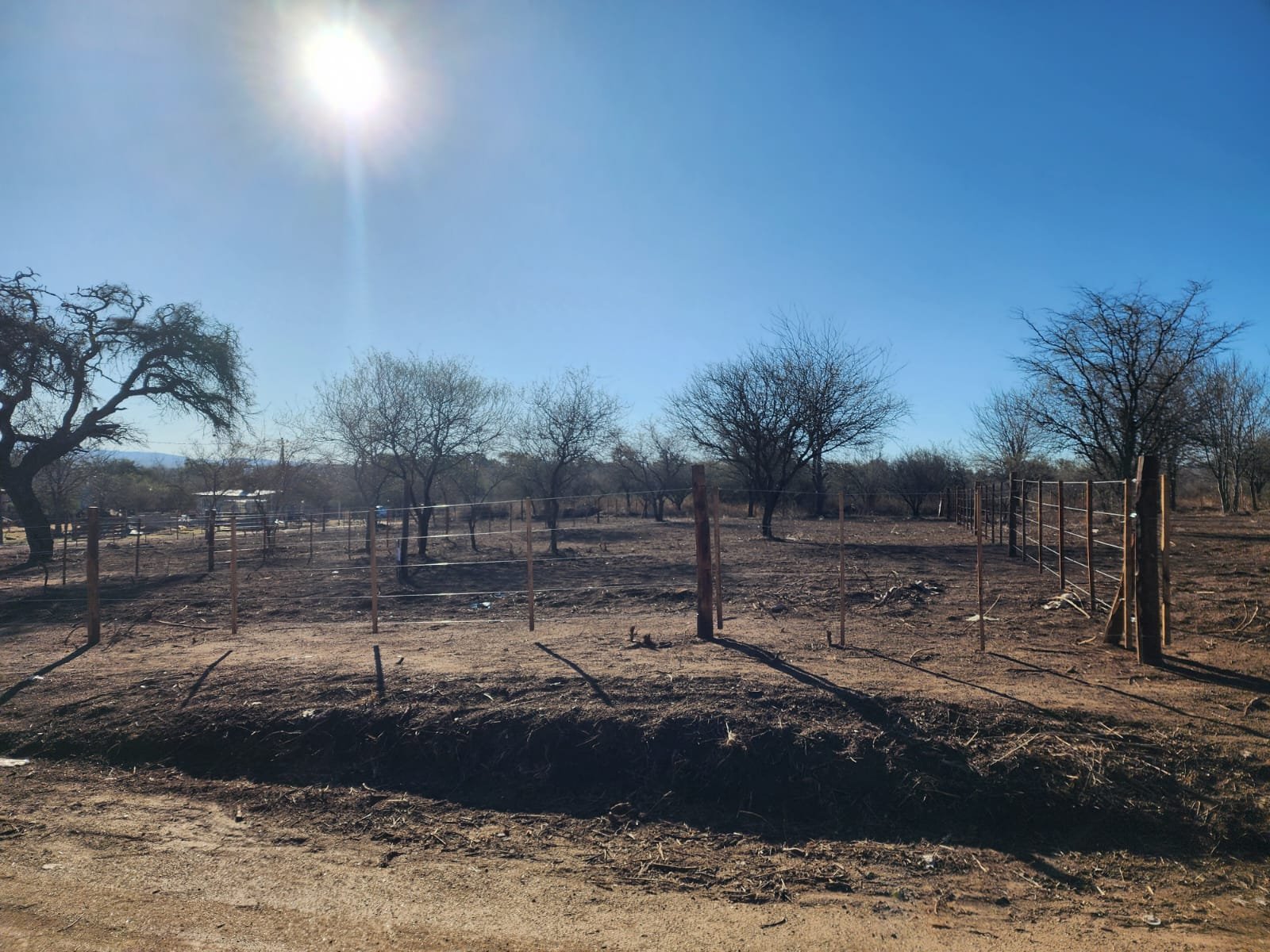 Los terrenos son planos para la construcción con algunos árboles autóctonos en su interior. Todo el perímetro está cerrado con postes de madera de quebracho y alambre de hilo.