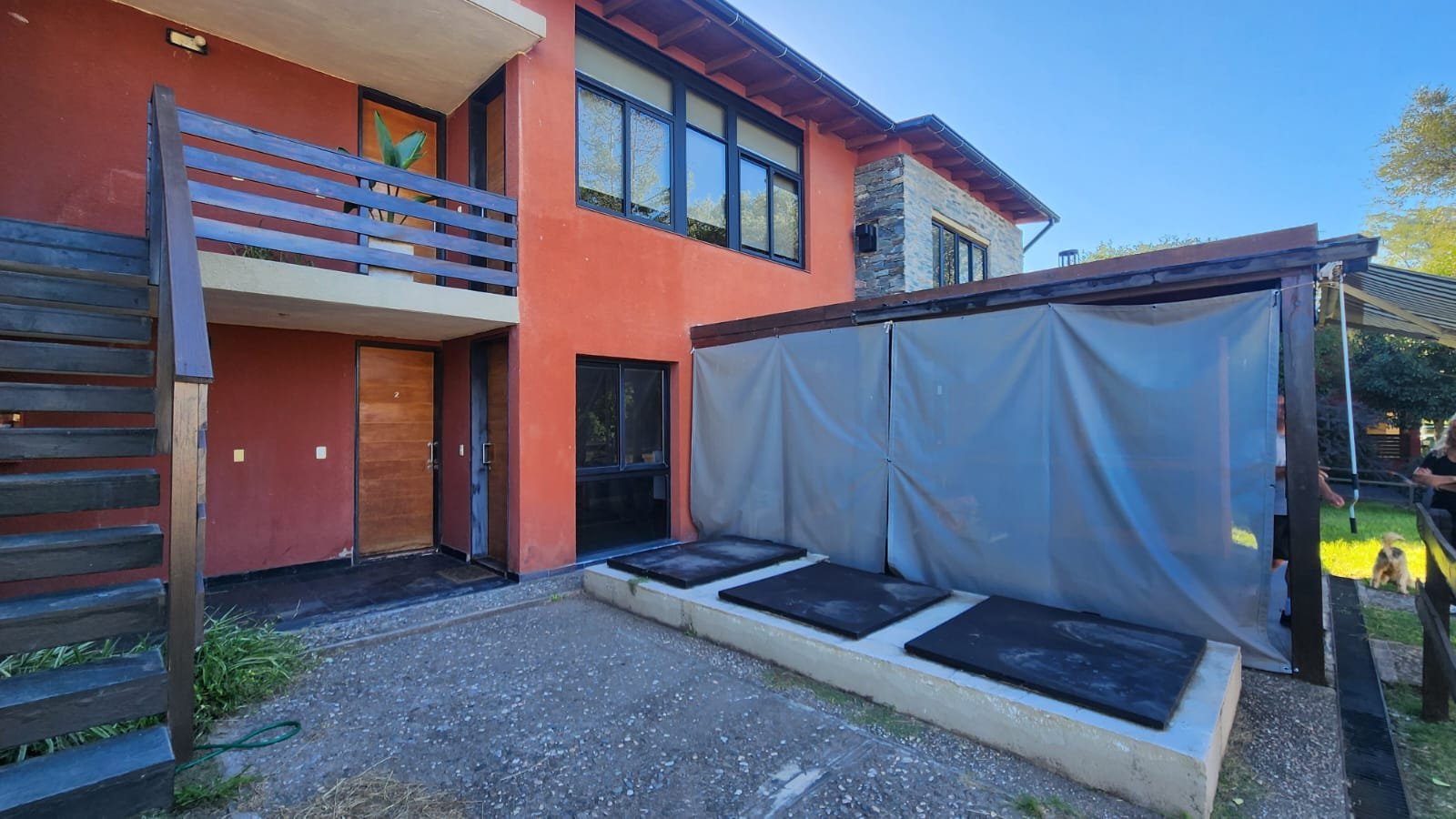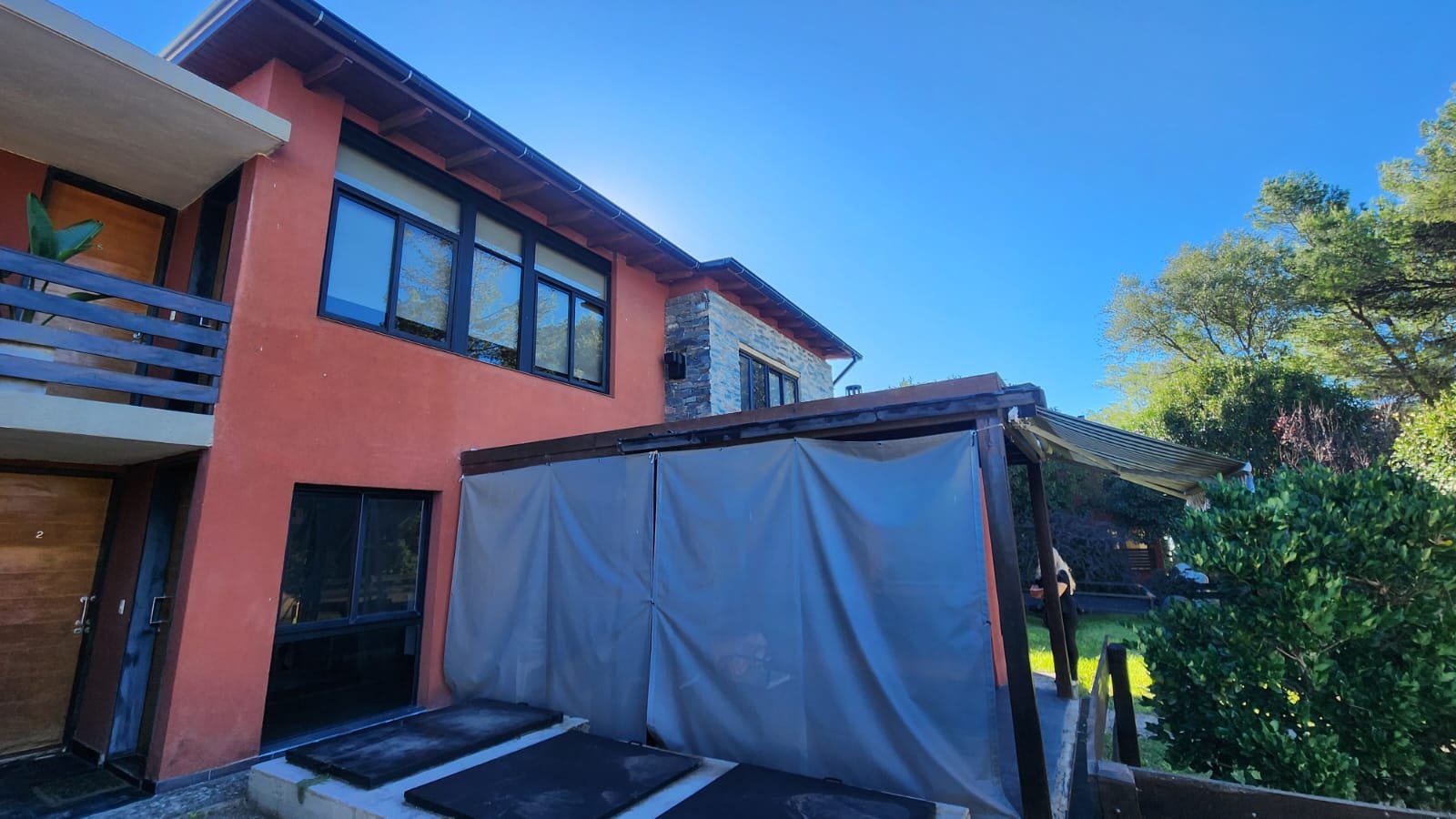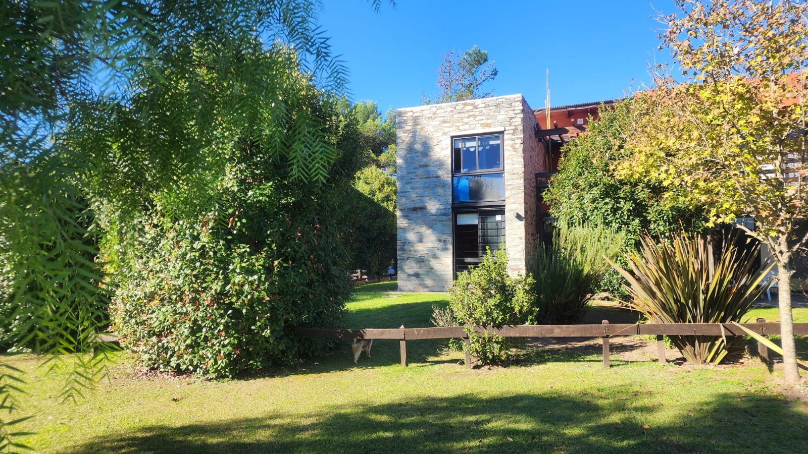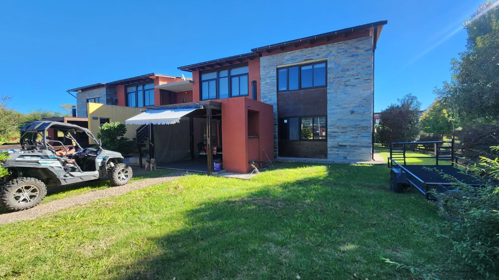 Por fuera hay un deck trasero con piso de quebracho con toldo extensible, igual que la cochera y patio parquizado.